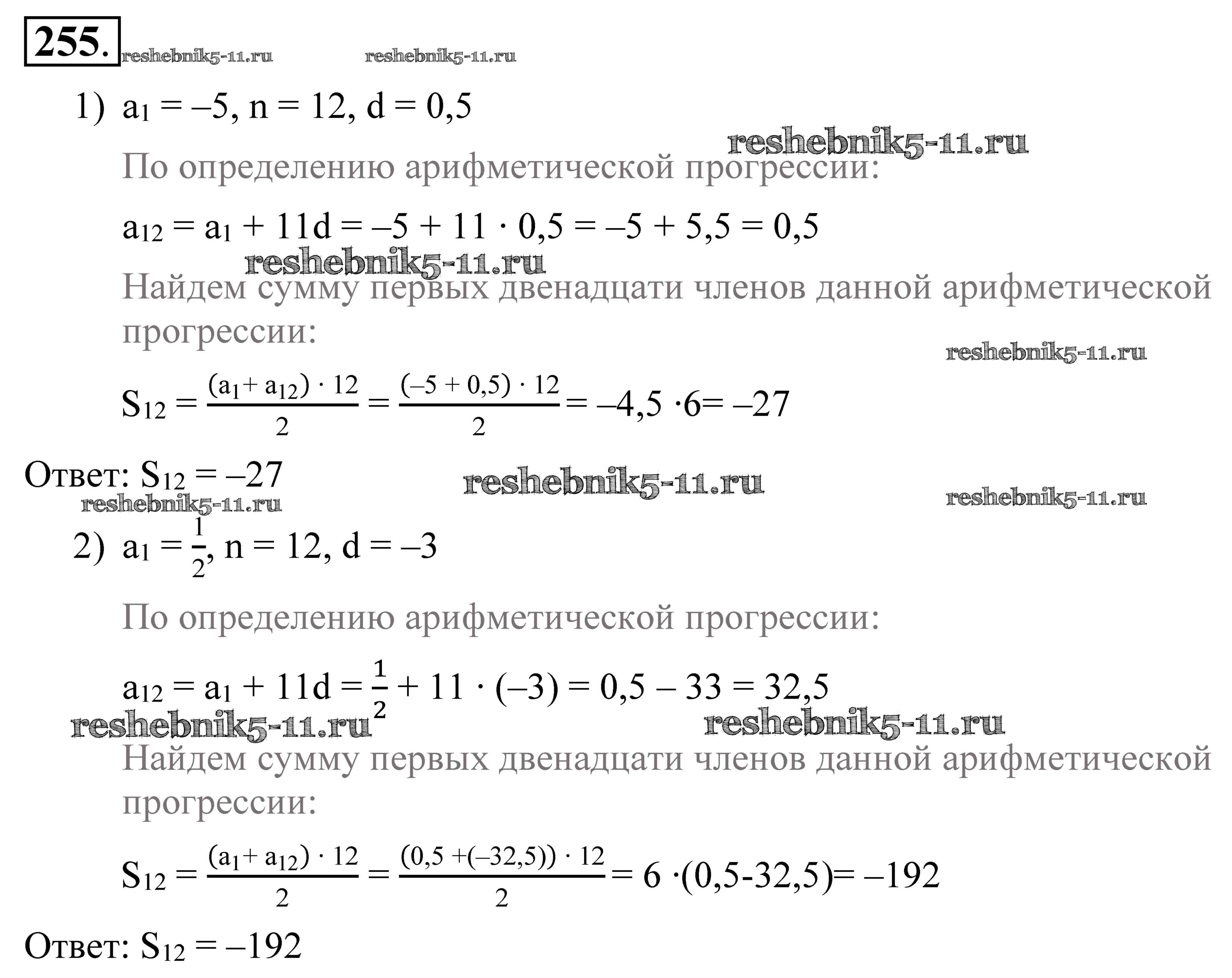 Готовая домашняя работа с ответами по Алгебре за 9 класс Алимов, Колягин, Сидоров Учебник Просвещение 2014 ФГОС - Упражнения 255