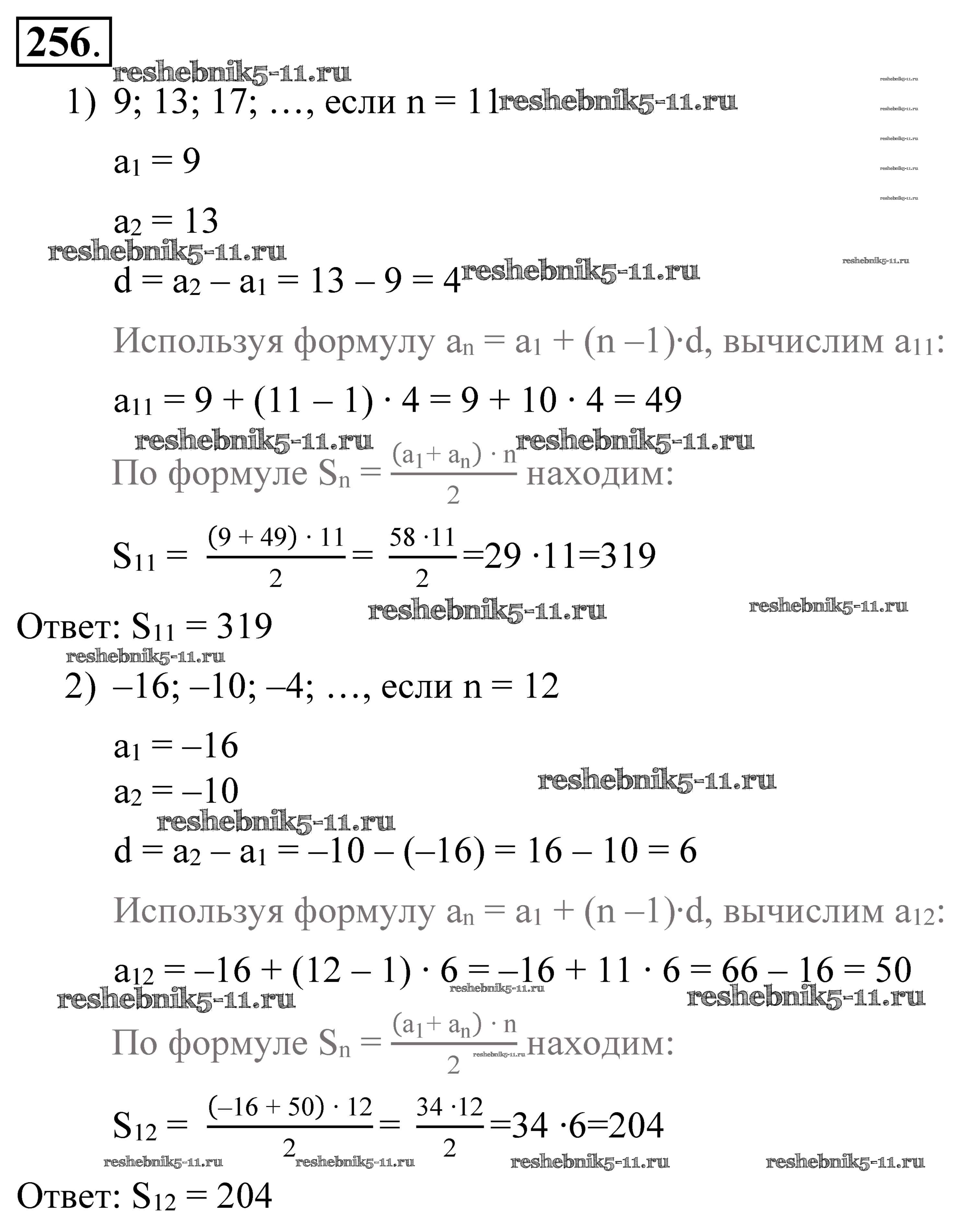 Готовая домашняя работа с ответами по Алгебре за 9 класс Алимов, Колягин, Сидоров Учебник Просвещение 2014 ФГОС - Упражнения 256