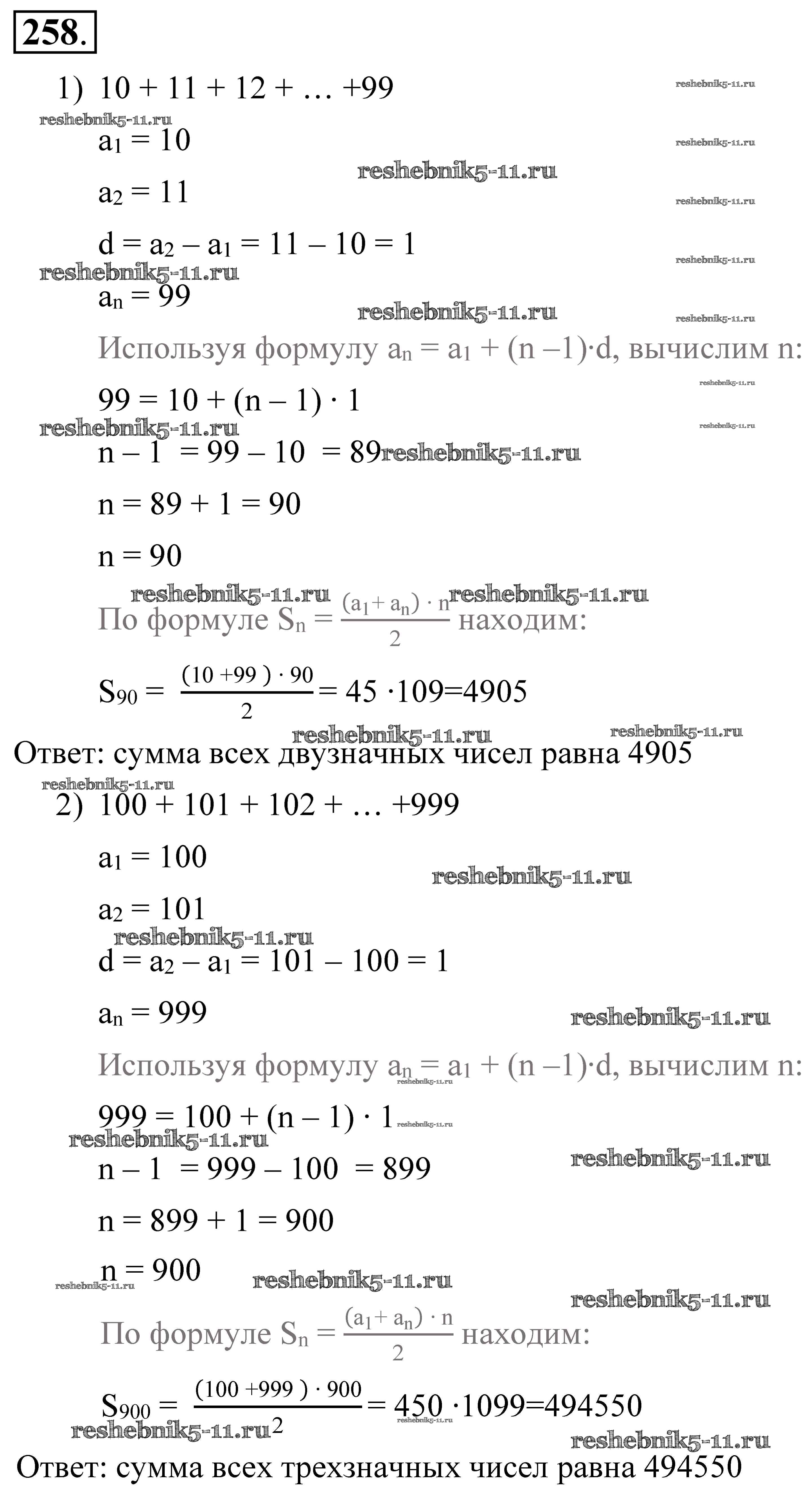 Готовая домашняя работа с ответами по Алгебре за 9 класс Алимов, Колягин, Сидоров Учебник Просвещение 2014 ФГОС - Упражнения 258