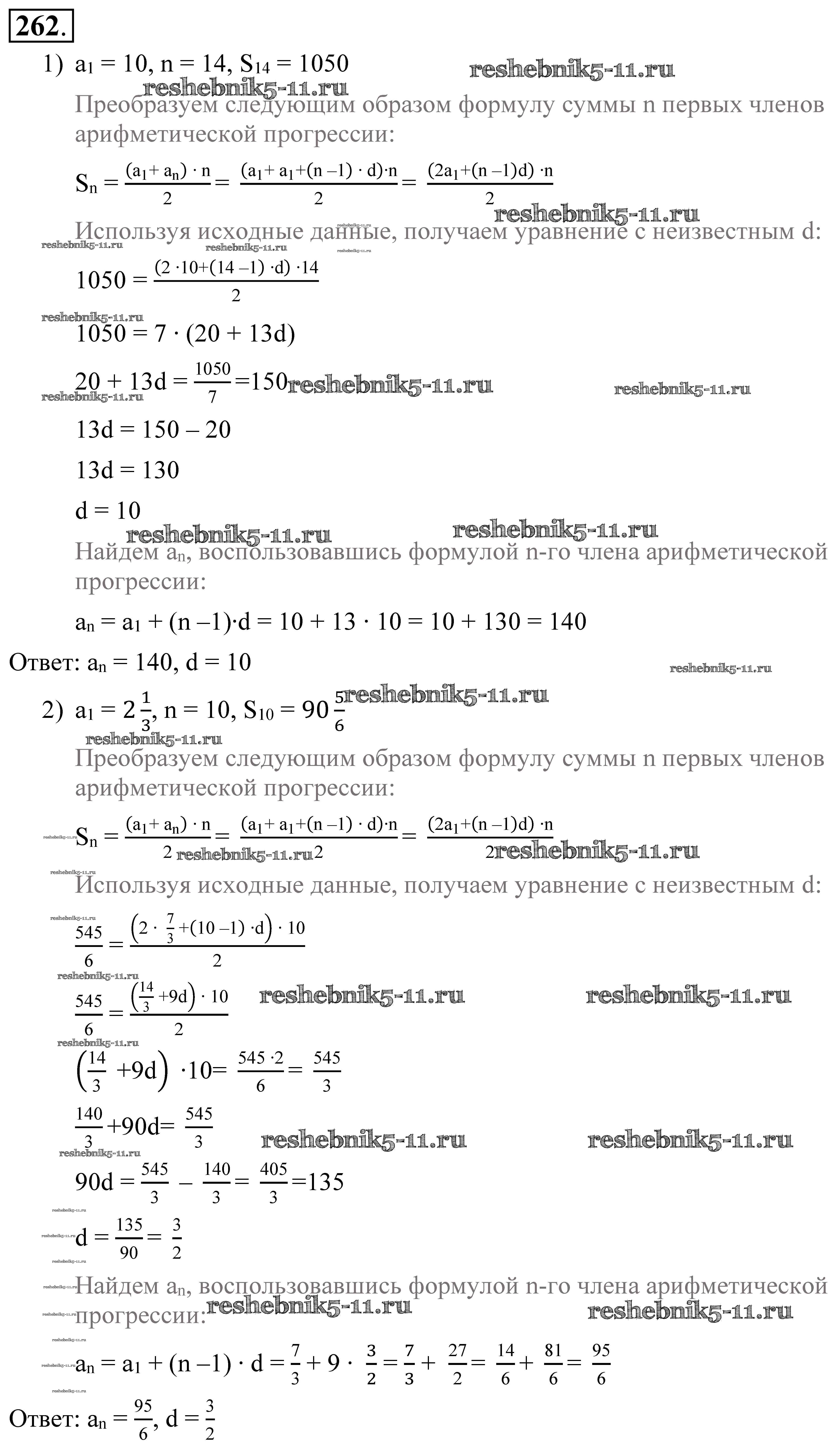 Готовая домашняя работа с ответами по Алгебре за 9 класс Алимов, Колягин, Сидоров Учебник Просвещение 2014 ФГОС - Упражнения 262