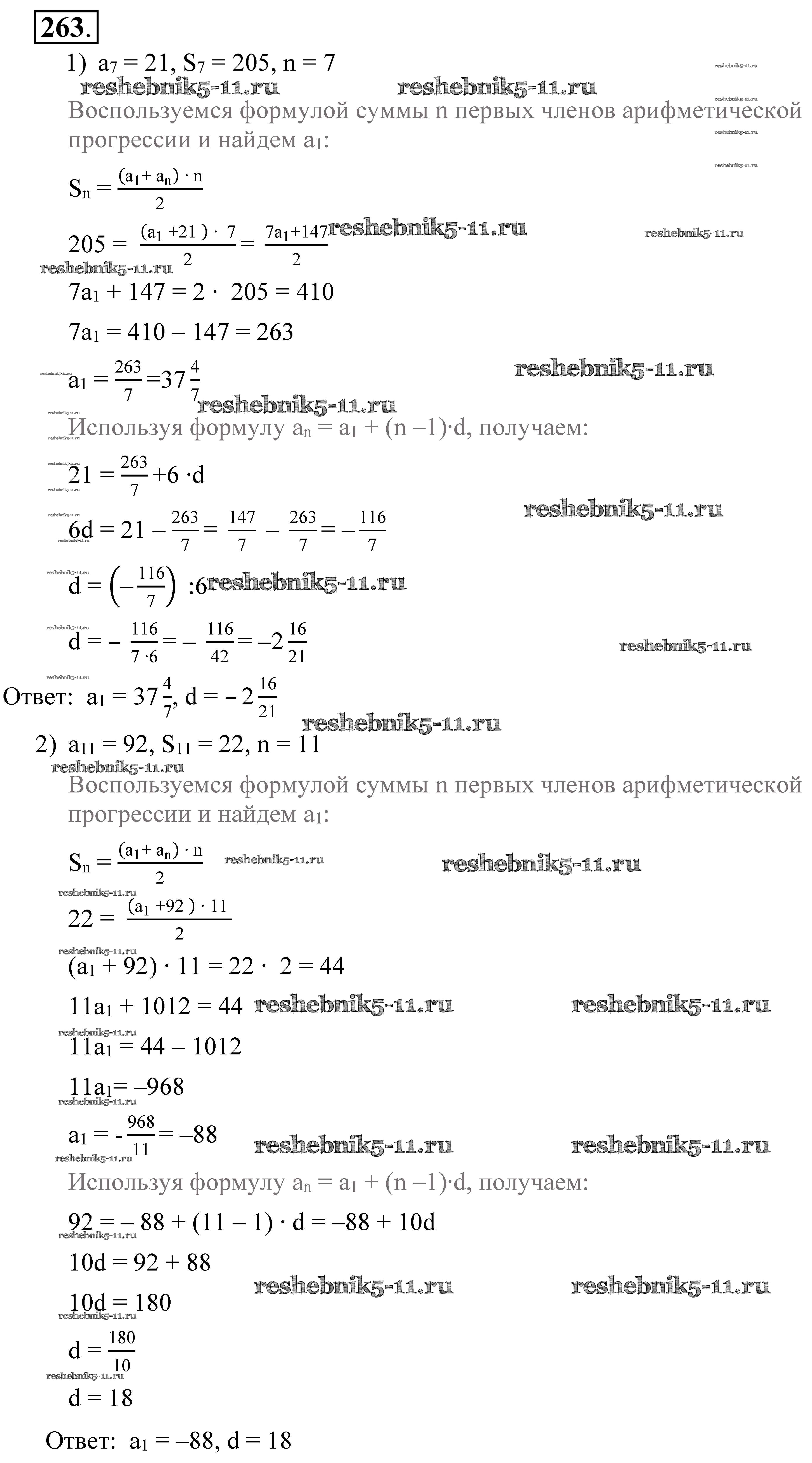 Готовая домашняя работа с ответами по Алгебре за 9 класс Алимов, Колягин, Сидоров Учебник Просвещение 2014 ФГОС - Упражнения 263
