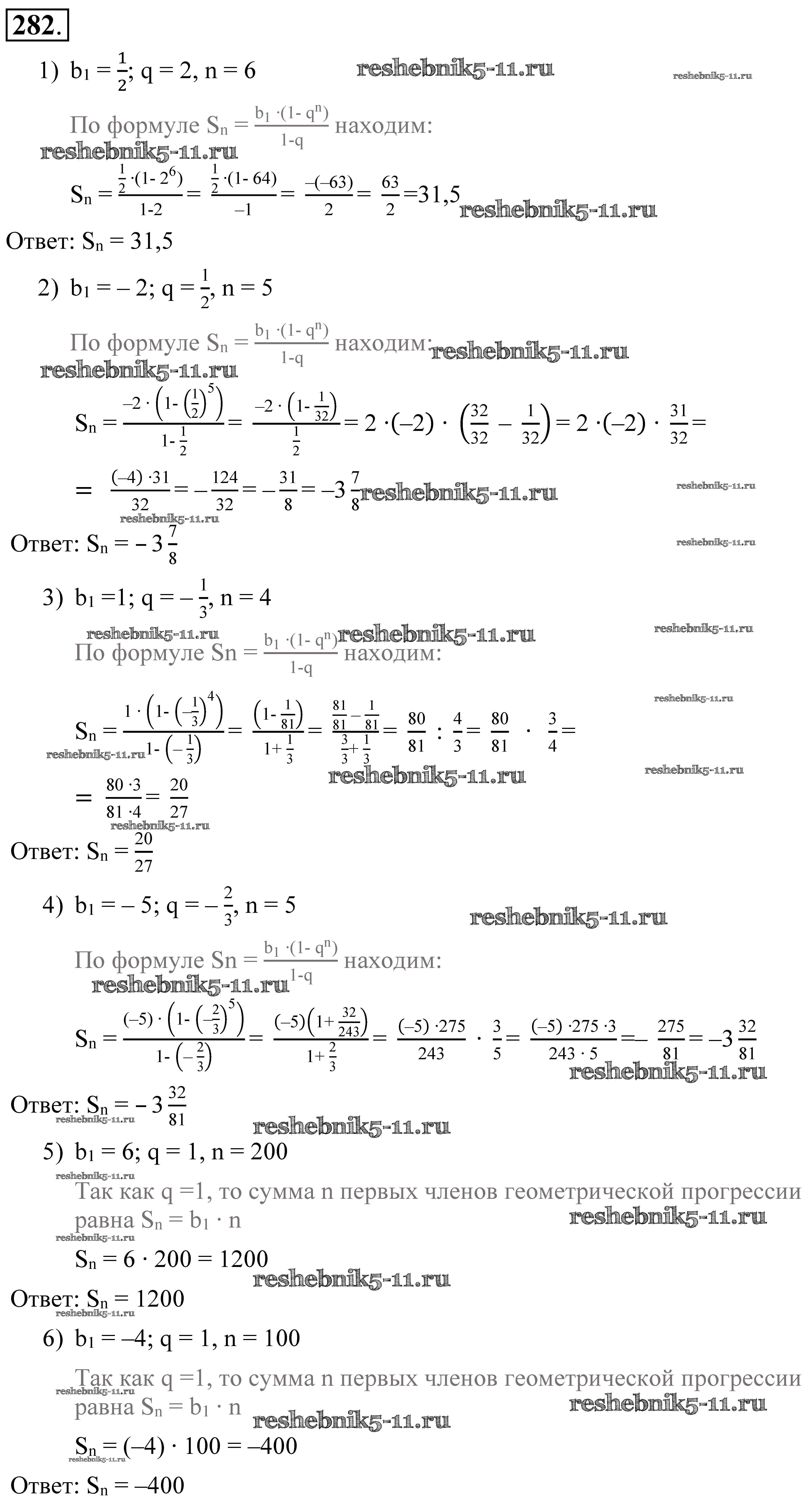 Готовая домашняя работа с ответами по Алгебре за 9 класс Алимов, Колягин, Сидоров Учебник Просвещение 2014 ФГОС - Упражнения 282