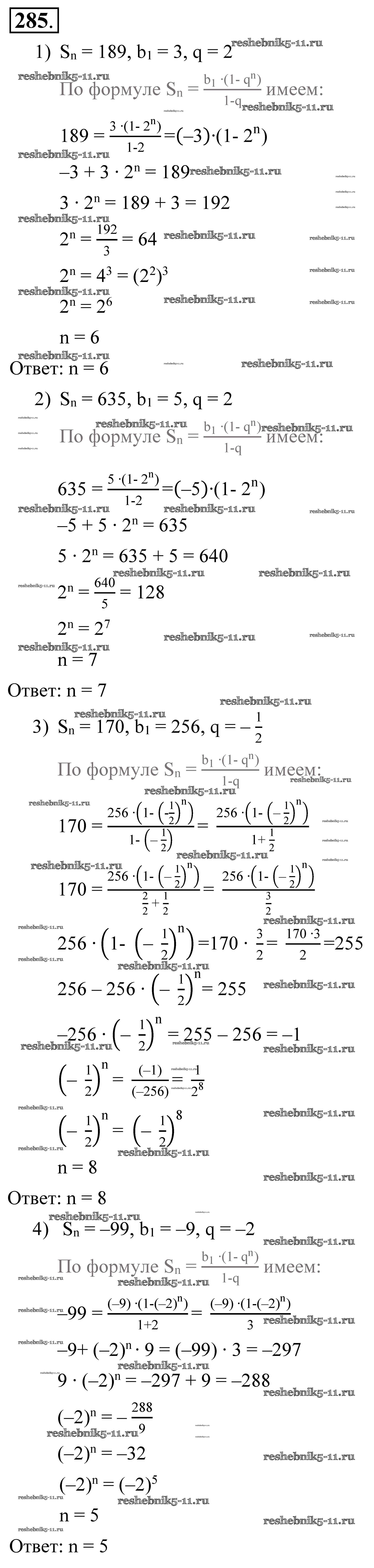 Готовая домашняя работа с ответами по Алгебре за 9 класс Алимов, Колягин, Сидоров Учебник Просвещение 2014 ФГОС - Упражнения 285