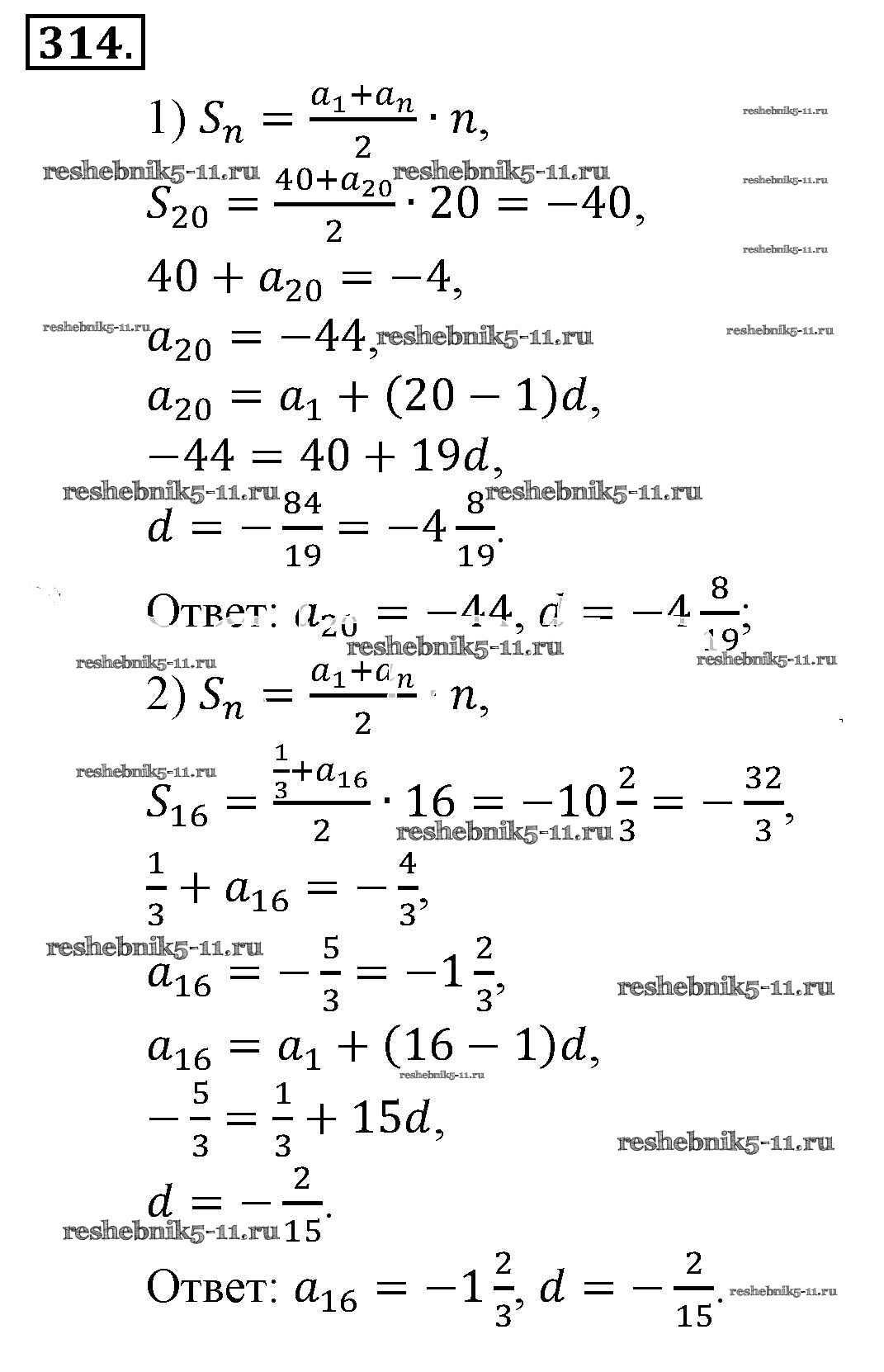 Готовая домашняя работа с ответами по Алгебре за 9 класс Алимов, Колягин, Сидоров Учебник Просвещение 2014 ФГОС - Упражнения 314