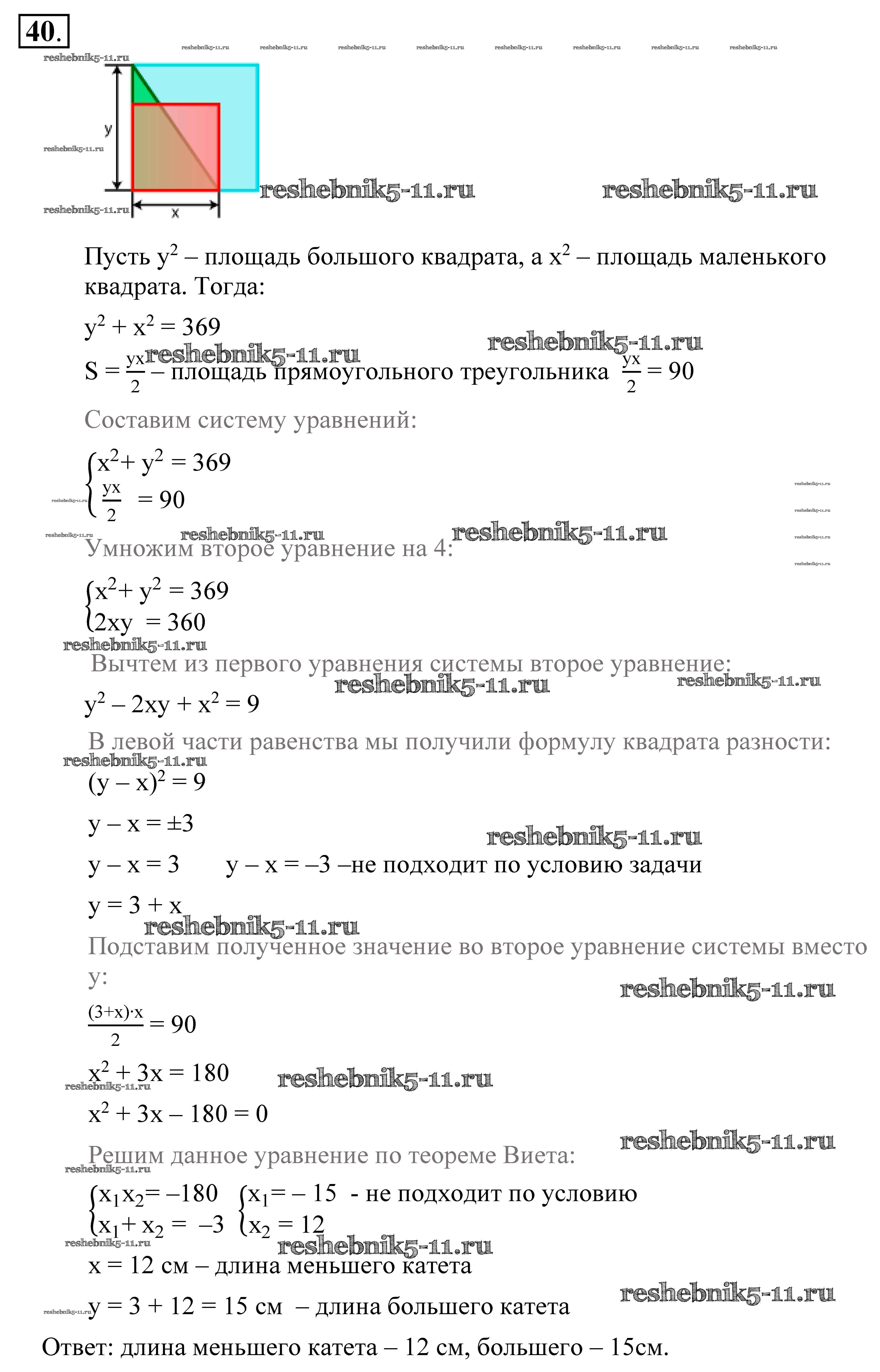 Готовая домашняя работа с ответами по Алгебре за 9 класс Алимов, Колягин, Сидоров Учебник Просвещение 2014 ФГОС - Упражнения 40