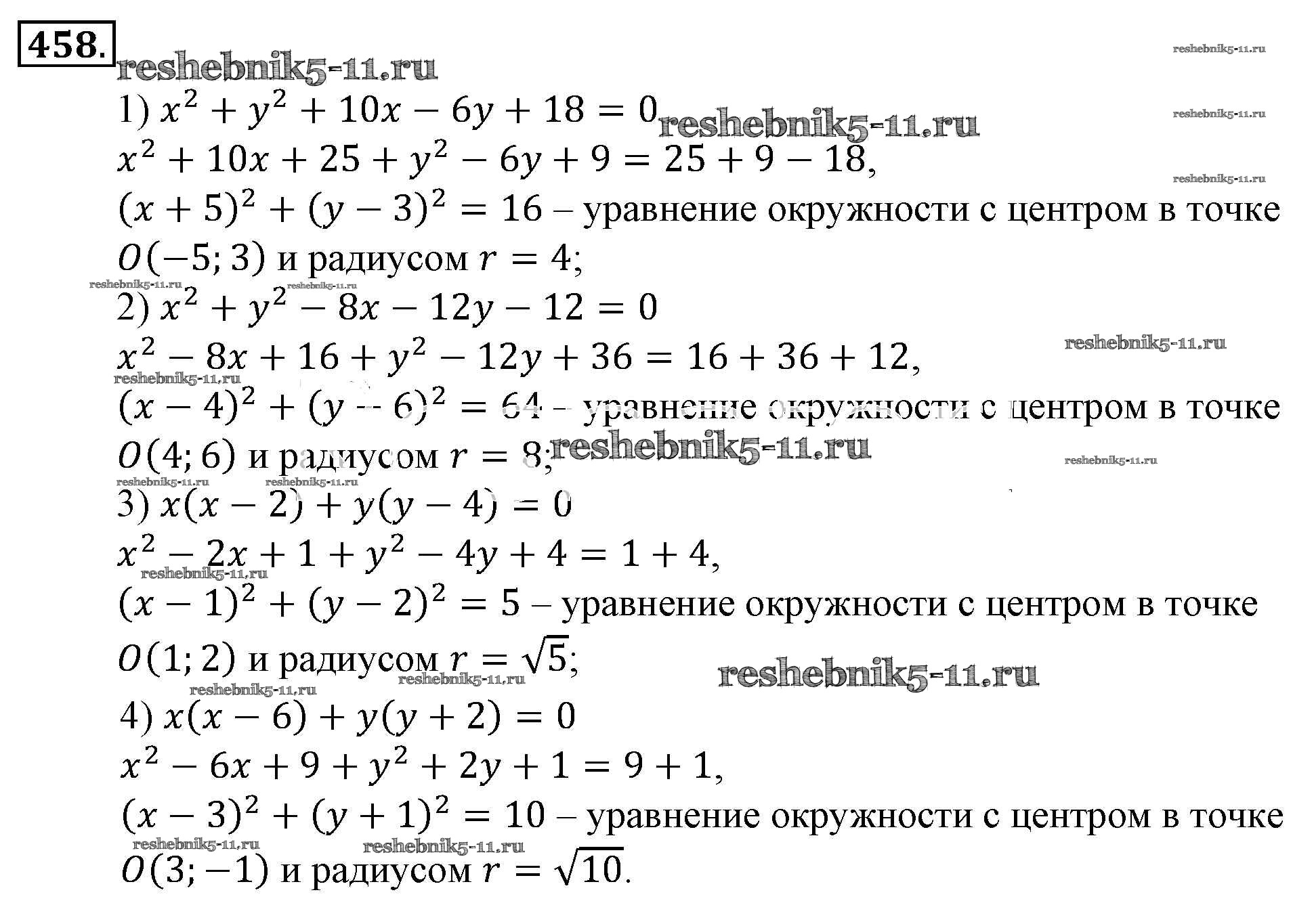 Готовая домашняя работа с ответами по Алгебре за 9 класс Алимов, Колягин, Сидоров Учебник Просвещение 2014 ФГОС - Упражнения 458