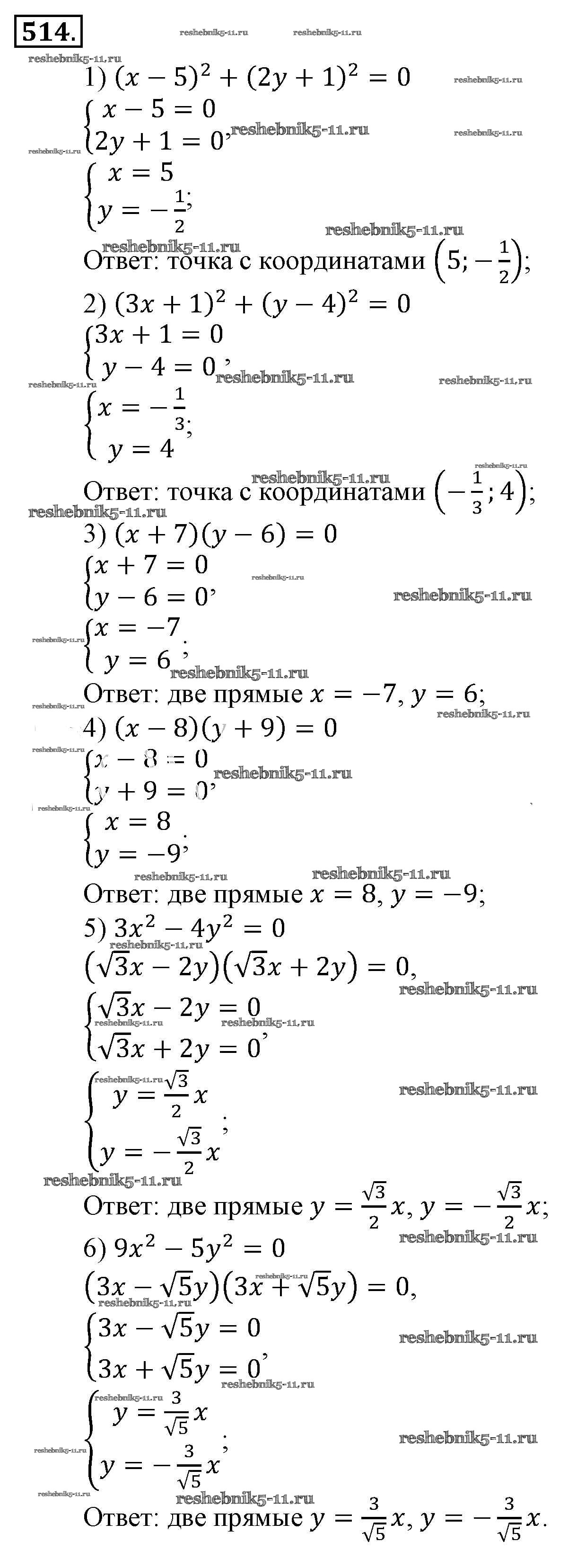 Готовая домашняя работа с ответами по Алгебре за 9 класс Алимов, Колягин, Сидоров Учебник Просвещение 2014 ФГОС - Упражнения 514