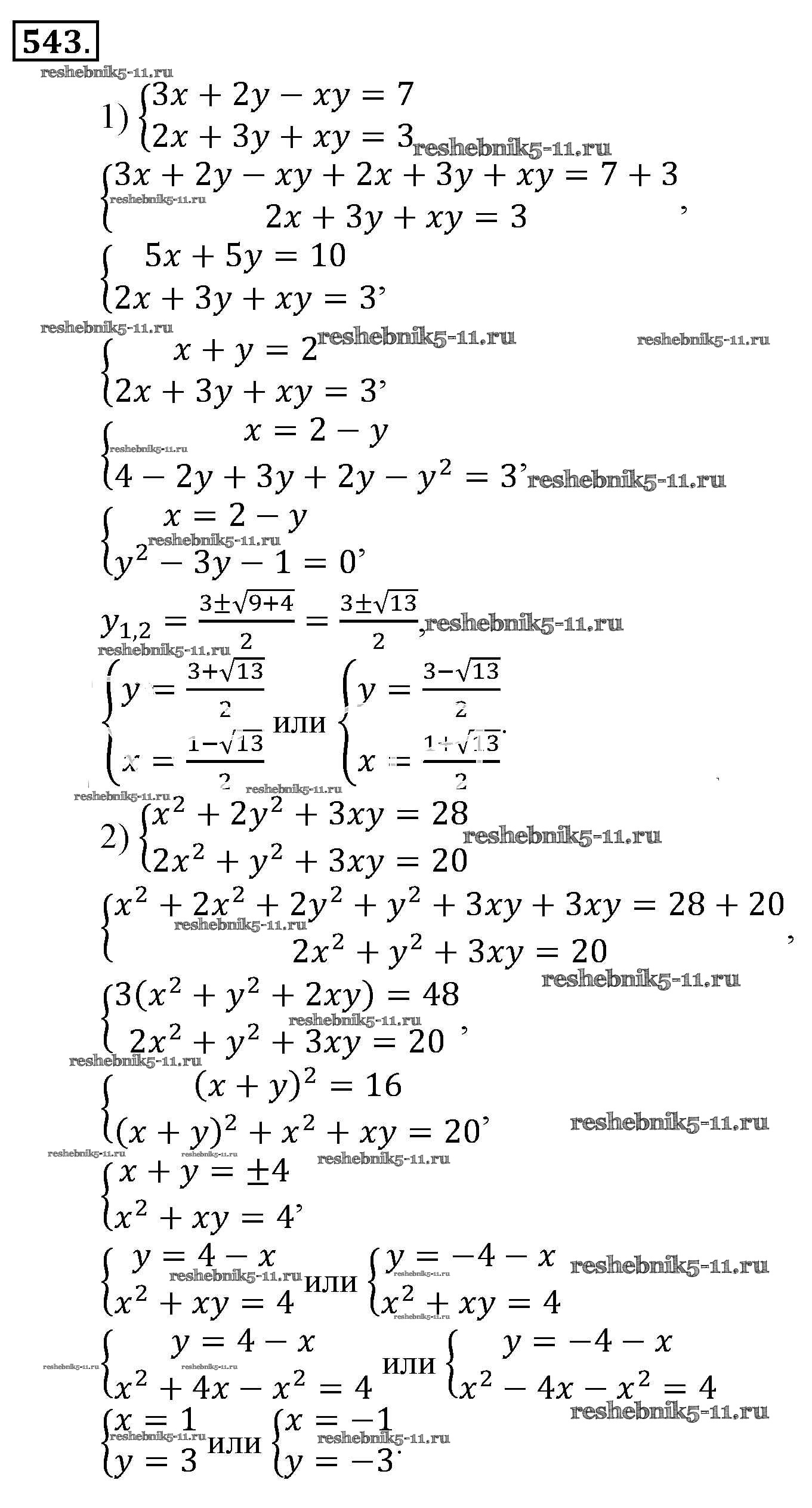 Готовая домашняя работа с ответами по Алгебре за 9 класс Алимов, Колягин, Сидоров Учебник Просвещение 2014 ФГОС - Упражнения 543