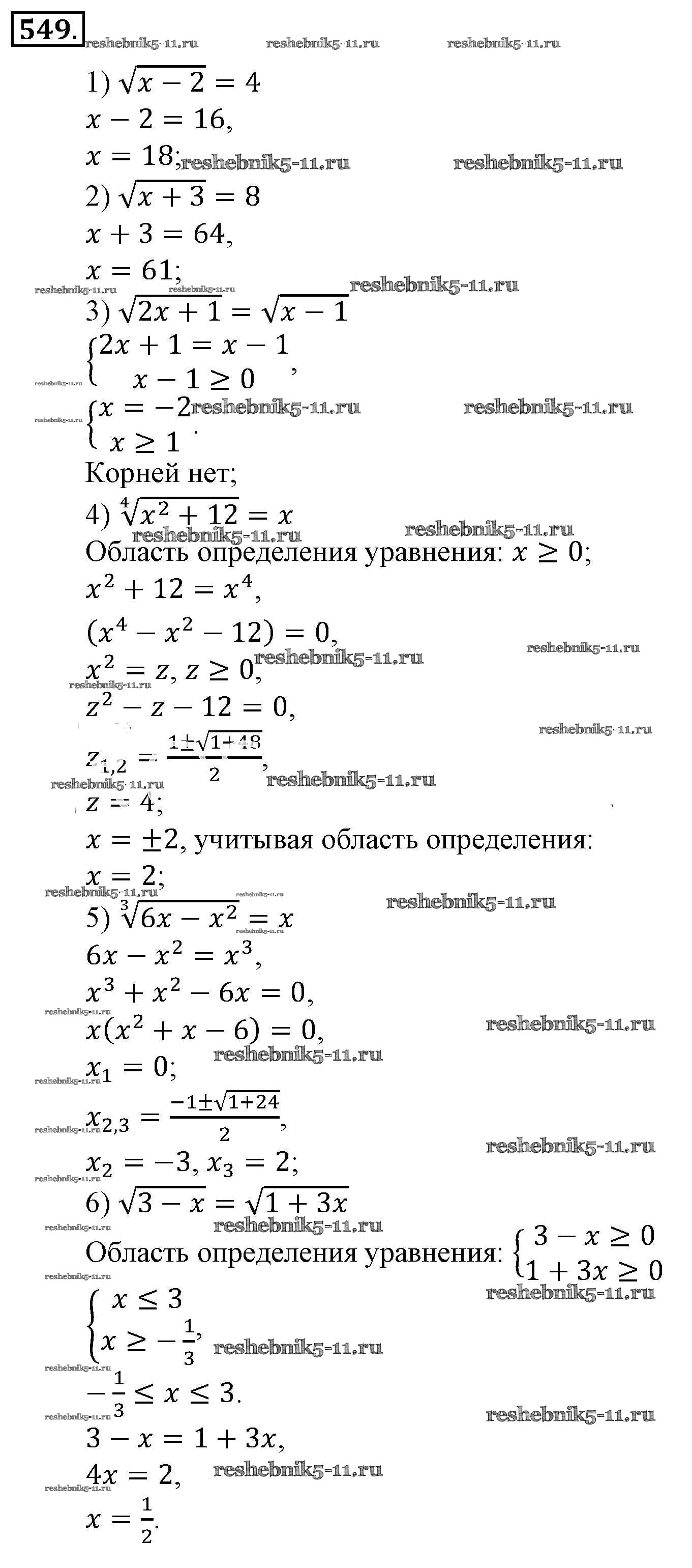 Готовая домашняя работа с ответами по Алгебре за 9 класс Алимов, Колягин, Сидоров Учебник Просвещение 2014 ФГОС - Упражнения 549