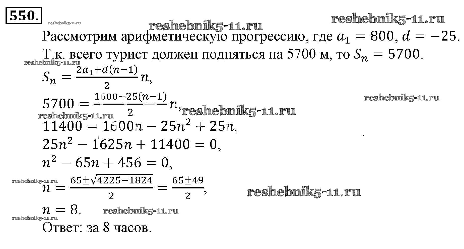 Готовая домашняя работа с ответами по Алгебре за 9 класс Алимов, Колягин, Сидоров Учебник Просвещение 2014 ФГОС - Упражнения 550