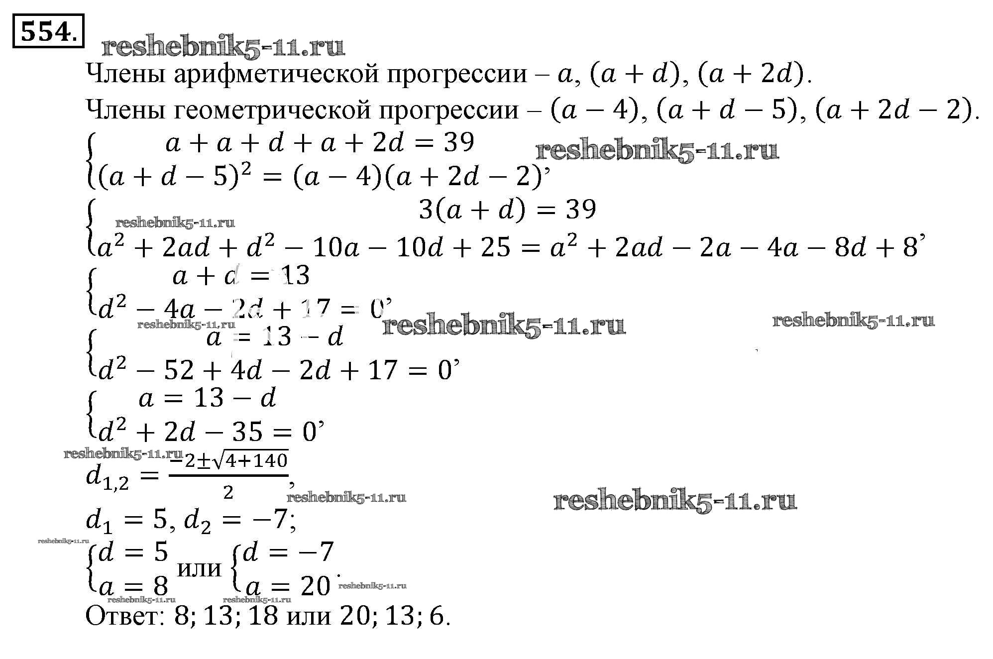 Готовая домашняя работа с ответами по Алгебре за 9 класс Алимов, Колягин, Сидоров Учебник Просвещение 2014 ФГОС - Упражнения 554