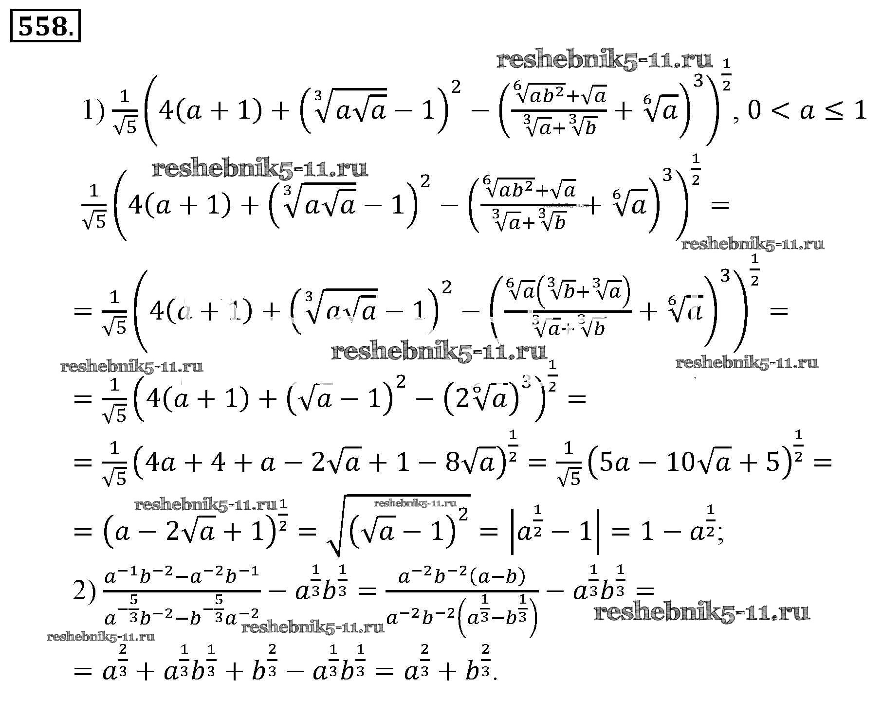 Готовая домашняя работа с ответами по Алгебре за 9 класс Алимов, Колягин, Сидоров Учебник Просвещение 2014 ФГОС - Упражнения 558