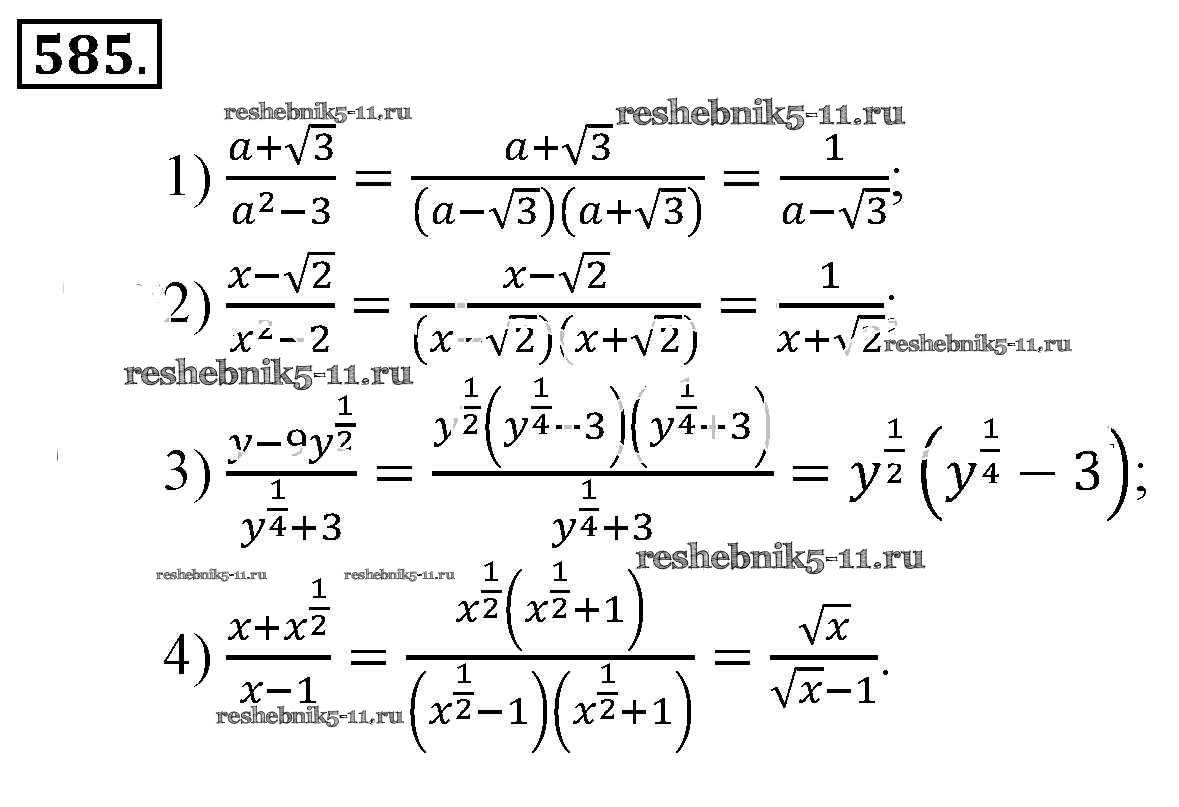 Готовая домашняя работа с ответами по Алгебре за 9 класс Алимов, Колягин, Сидоров Учебник Просвещение 2014 ФГОС - Упражнения 585