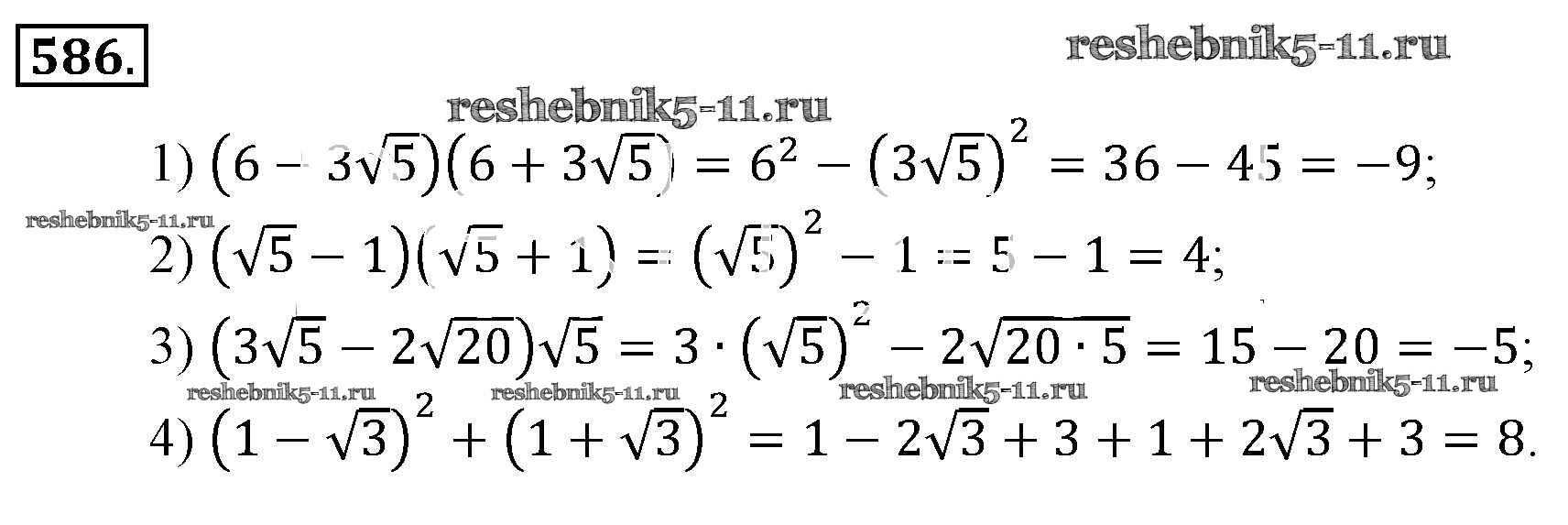 Готовая домашняя работа с ответами по Алгебре за 9 класс Алимов, Колягин, Сидоров Учебник Просвещение 2014 ФГОС - Упражнения 586