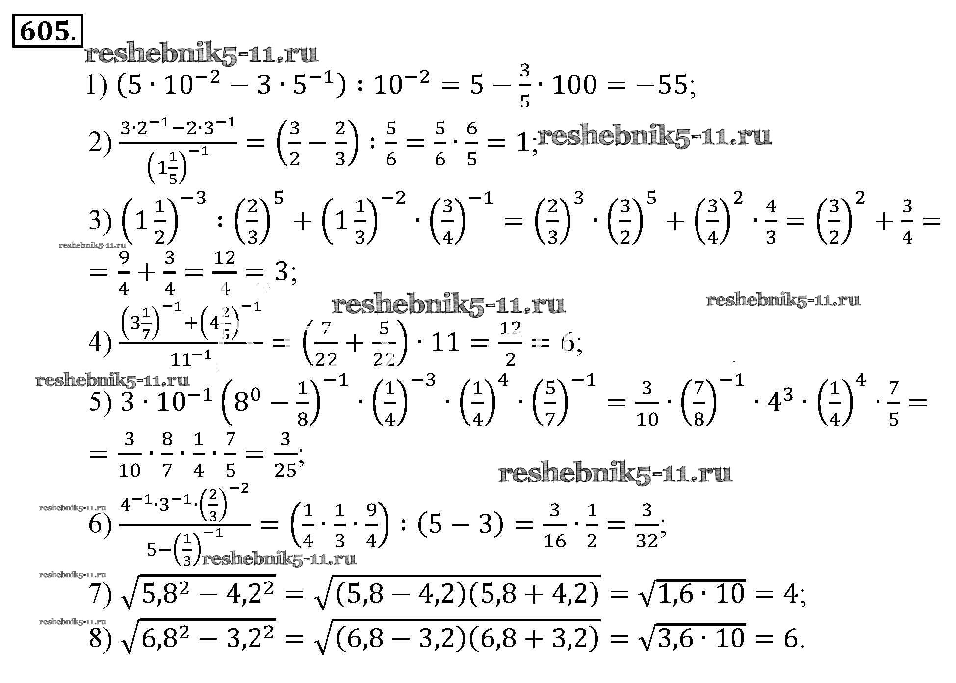 Готовая домашняя работа с ответами по Алгебре за 9 класс Алимов, Колягин, Сидоров Учебник Просвещение 2014 ФГОС - Упражнения 605