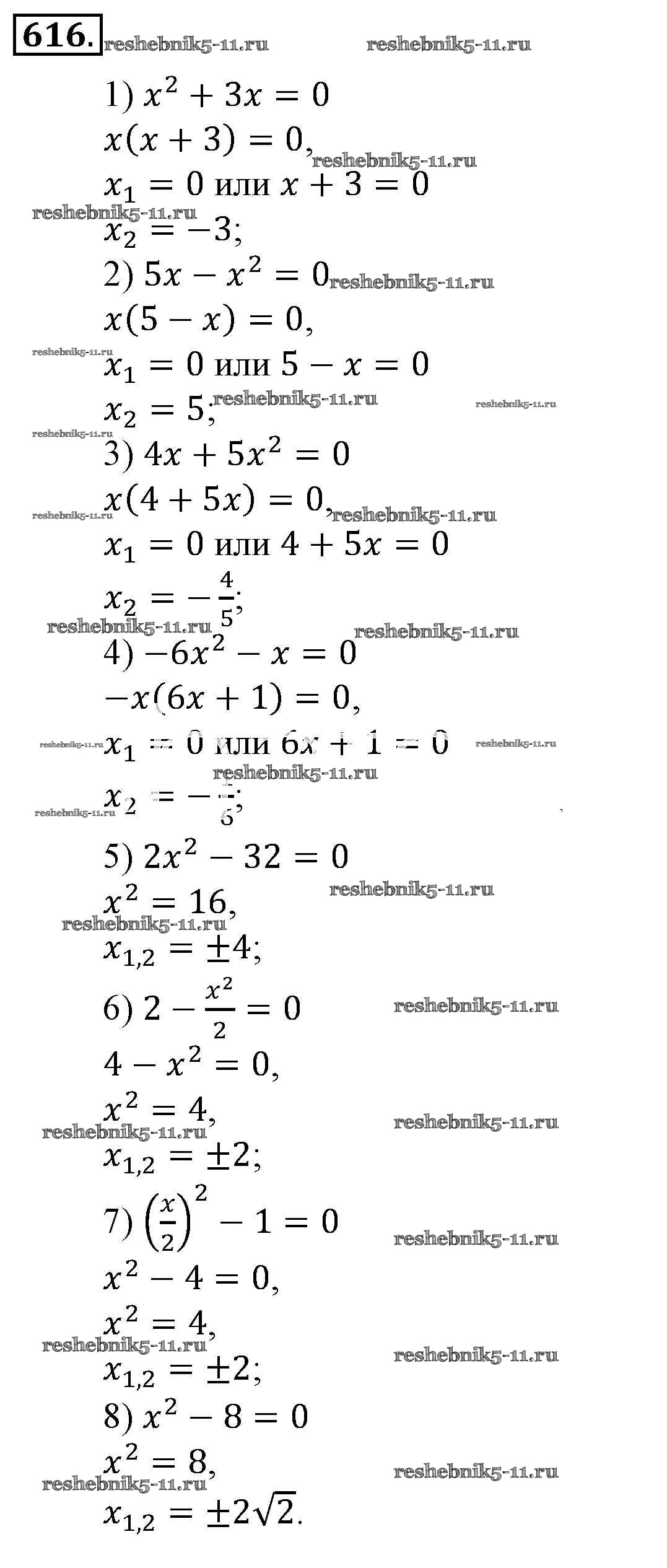 Готовая домашняя работа с ответами по Алгебре за 9 класс Алимов, Колягин, Сидоров Учебник Просвещение 2014 ФГОС - Упражнения 616