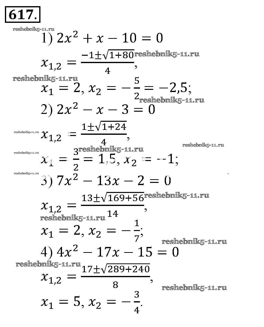 Готовая домашняя работа с ответами по Алгебре за 9 класс Алимов, Колягин, Сидоров Учебник Просвещение 2014 ФГОС - Упражнения 617