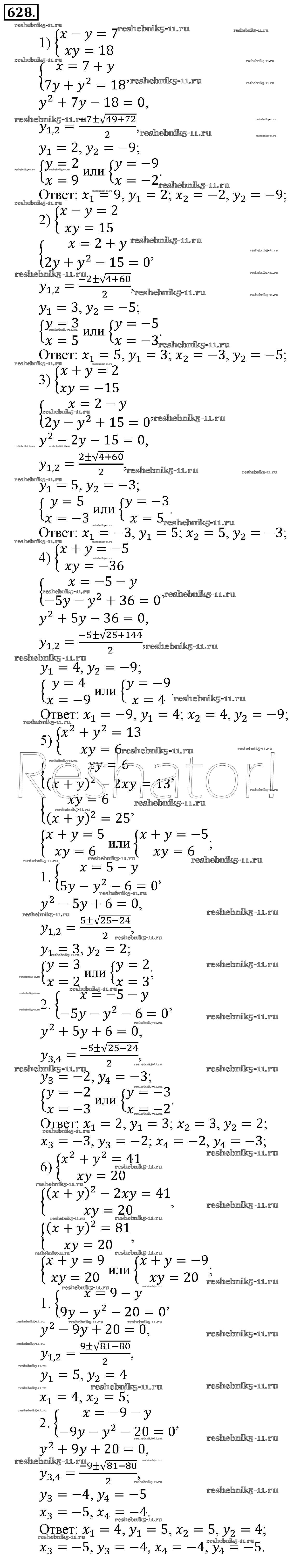 Готовая домашняя работа с ответами по Алгебре за 9 класс Алимов, Колягин, Сидоров Учебник Просвещение 2014 ФГОС - Упражнения 628