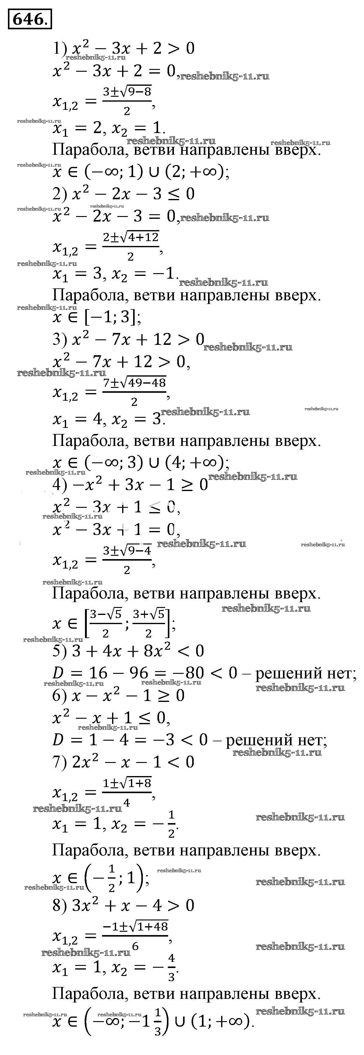 Готовая домашняя работа с ответами по Алгебре за 9 класс Алимов, Колягин, Сидоров Учебник Просвещение 2014 ФГОС - Упражнения 646