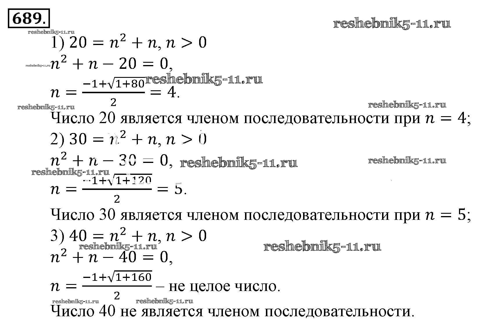 Готовая домашняя работа с ответами по Алгебре за 9 класс Алимов, Колягин, Сидоров Учебник Просвещение 2014 ФГОС - Упражнения 689