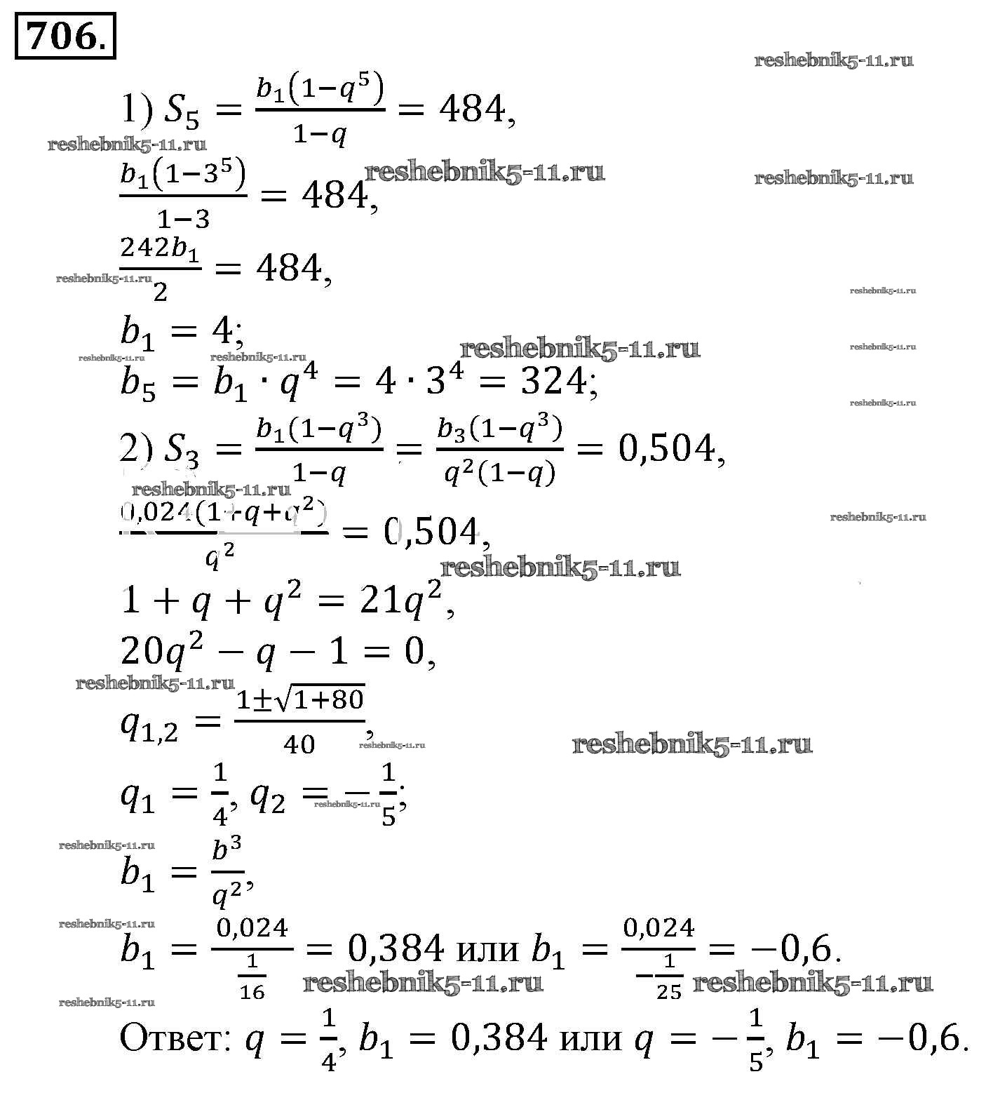 Готовая домашняя работа с ответами по Алгебре за 9 класс Алимов, Колягин, Сидоров Учебник Просвещение 2014 ФГОС - Упражнения 706