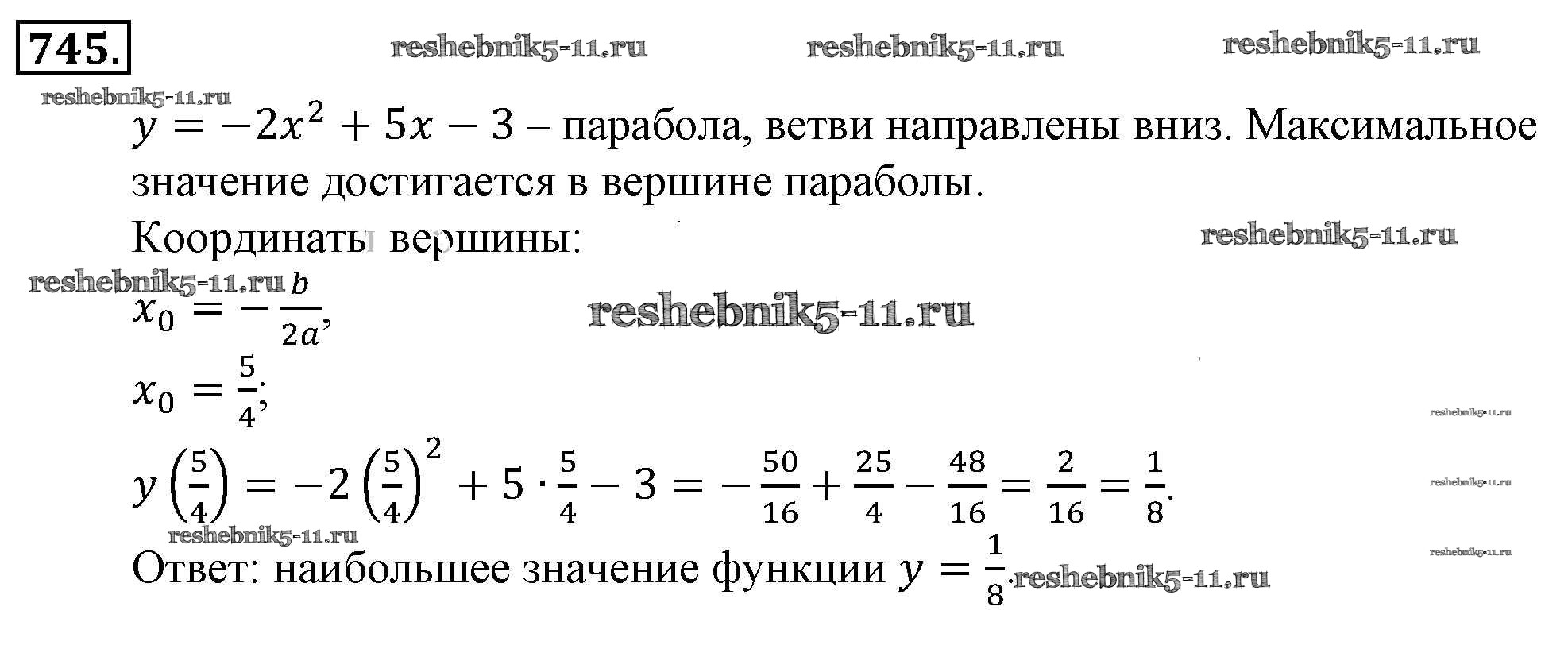 Готовая домашняя работа с ответами по Алгебре за 9 класс Алимов, Колягин, Сидоров Учебник Просвещение 2014 ФГОС - Упражнения 745