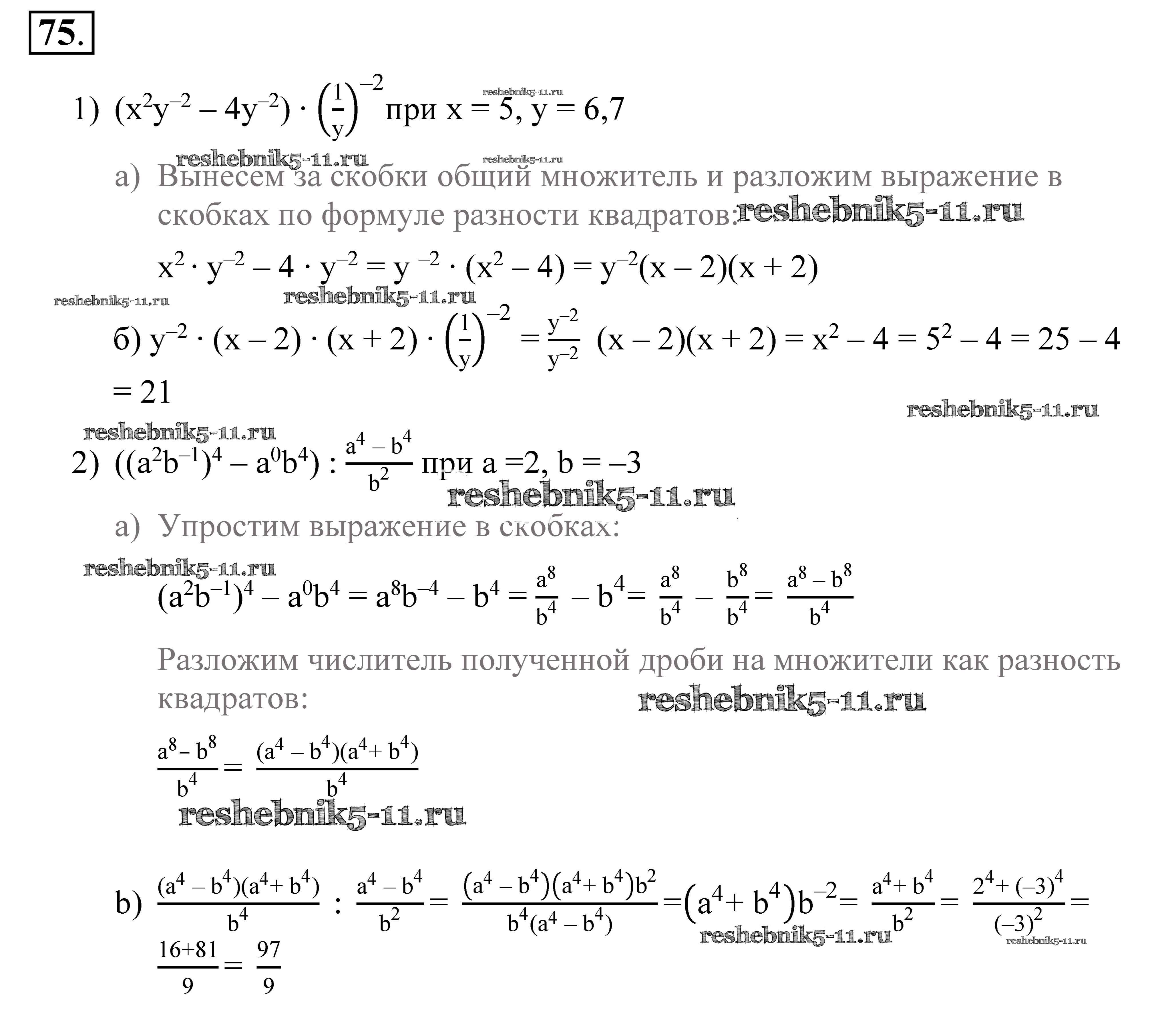 Готовая домашняя работа с ответами по Алгебре за 9 класс Алимов, Колягин, Сидоров Учебник Просвещение 2014 ФГОС - Упражнения 75