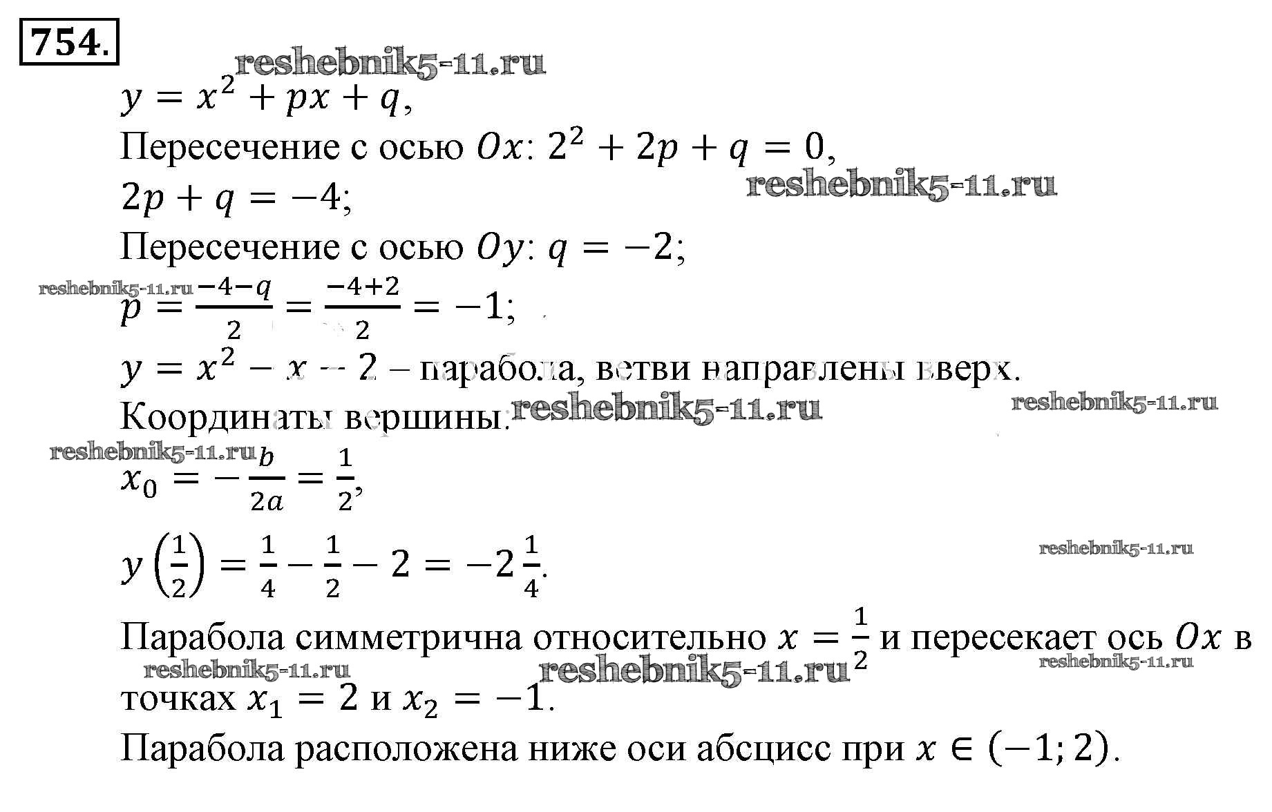 Готовая домашняя работа с ответами по Алгебре за 9 класс Алимов, Колягин, Сидоров Учебник Просвещение 2014 ФГОС - Упражнения 754