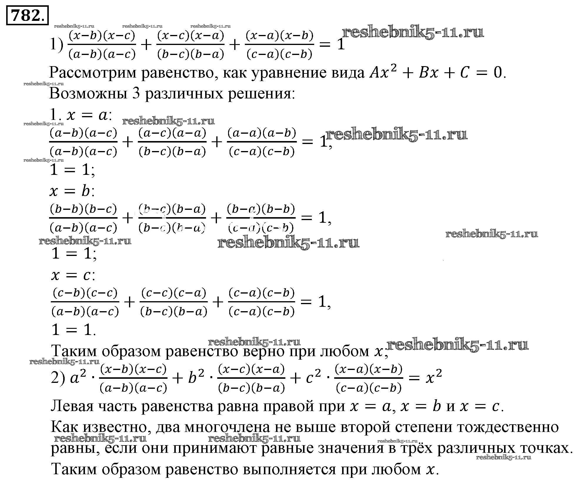 Готовая домашняя работа с ответами по Алгебре за 9 класс Алимов, Колягин, Сидоров Учебник Просвещение 2014 ФГОС - Упражнения 782