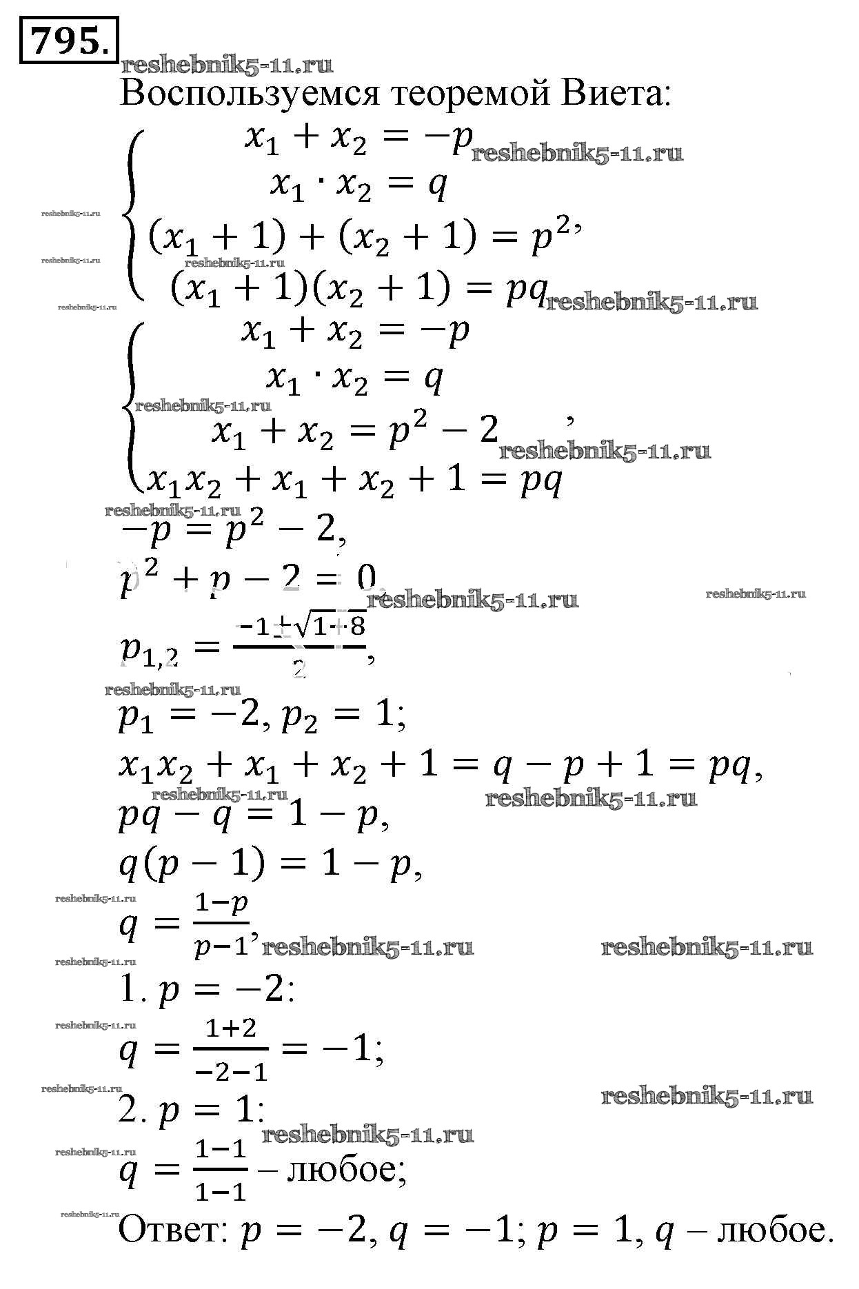 Готовая домашняя работа с ответами по Алгебре за 9 класс Алимов, Колягин, Сидоров Учебник Просвещение 2014 ФГОС - Упражнения 795