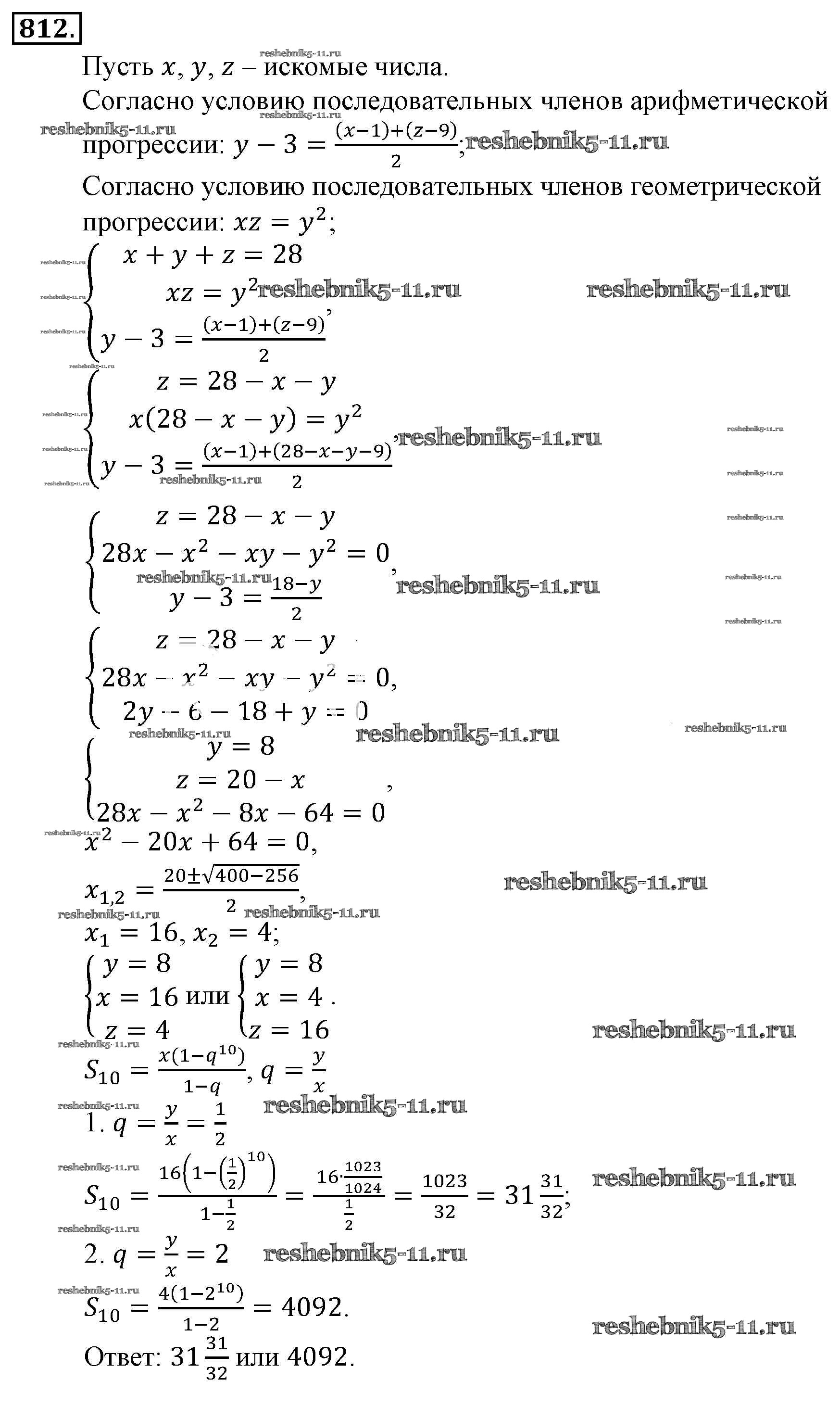 Готовая домашняя работа с ответами по Алгебре за 9 класс Алимов, Колягин, Сидоров Учебник Просвещение 2014 ФГОС - Упражнения 812