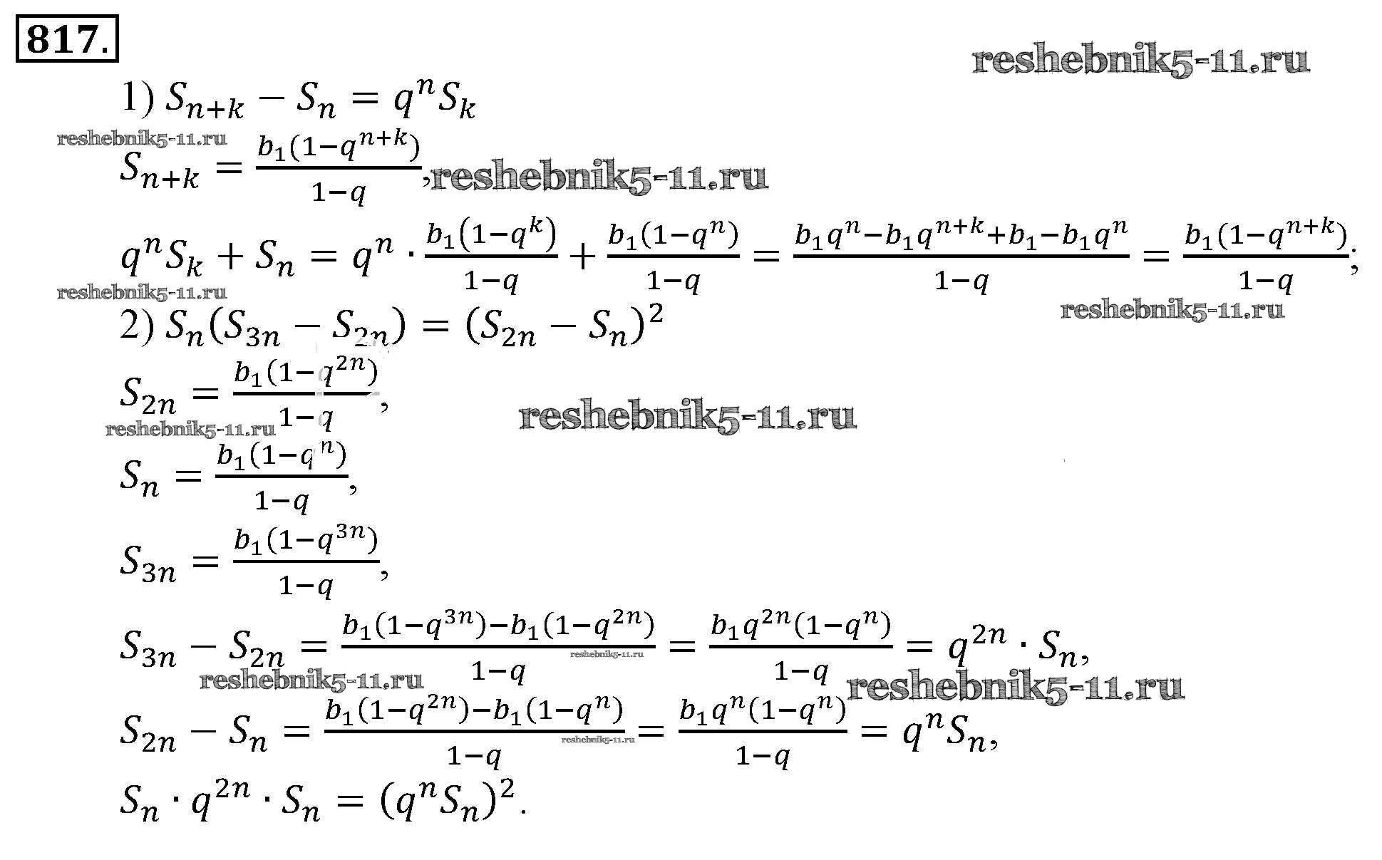 Готовая домашняя работа с ответами по Алгебре за 9 класс Алимов, Колягин, Сидоров Учебник Просвещение 2014 ФГОС - Упражнения 817