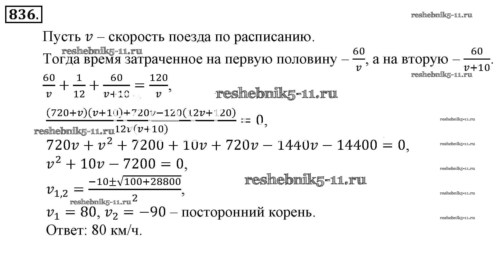 Готовая домашняя работа с ответами по Алгебре за 9 класс Алимов, Колягин, Сидоров Учебник Просвещение 2014 ФГОС - Упражнения 836