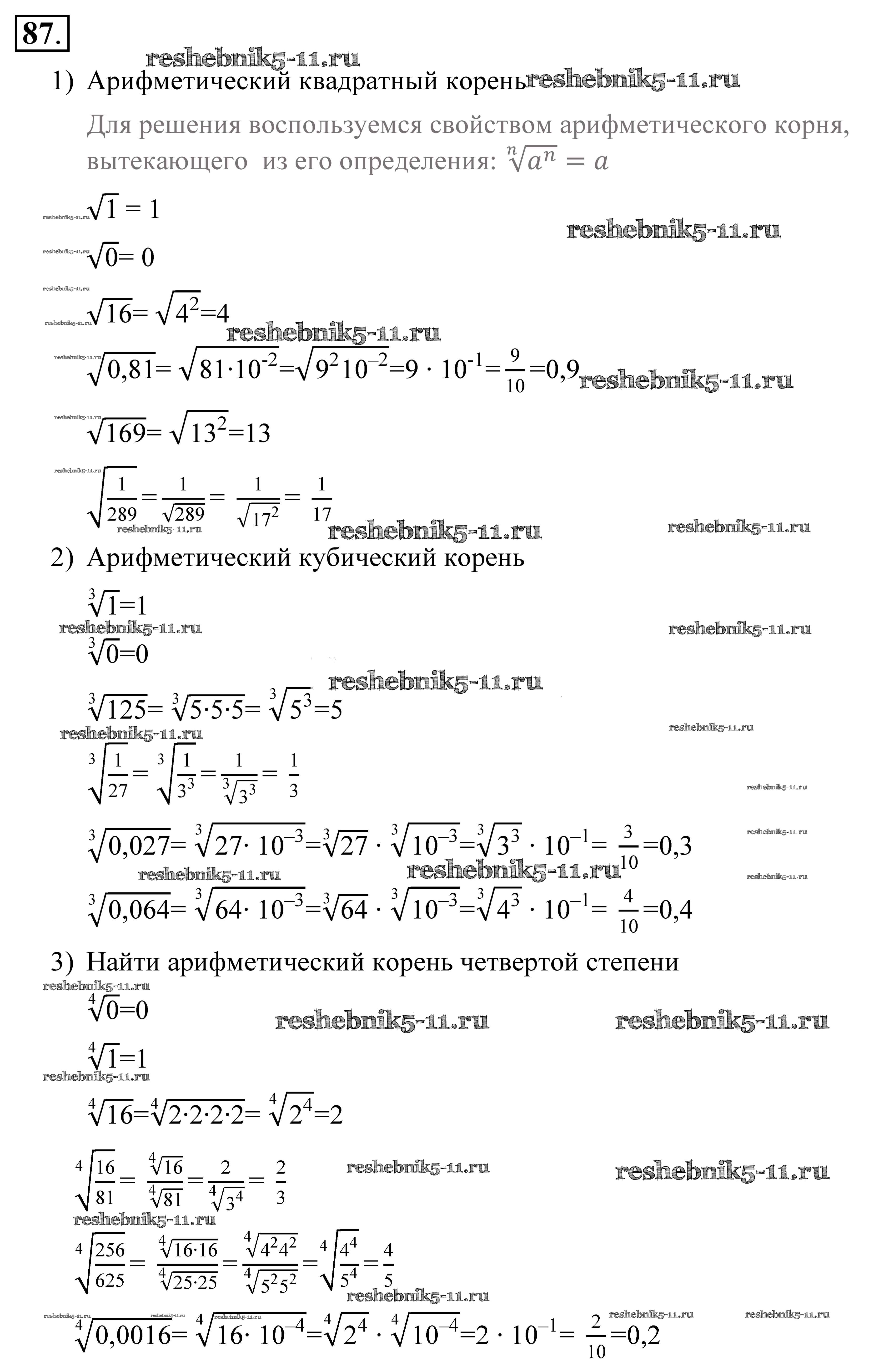 Готовая домашняя работа с ответами по Алгебре за 9 класс Алимов, Колягин, Сидоров Учебник Просвещение 2014 ФГОС - Упражнения 87