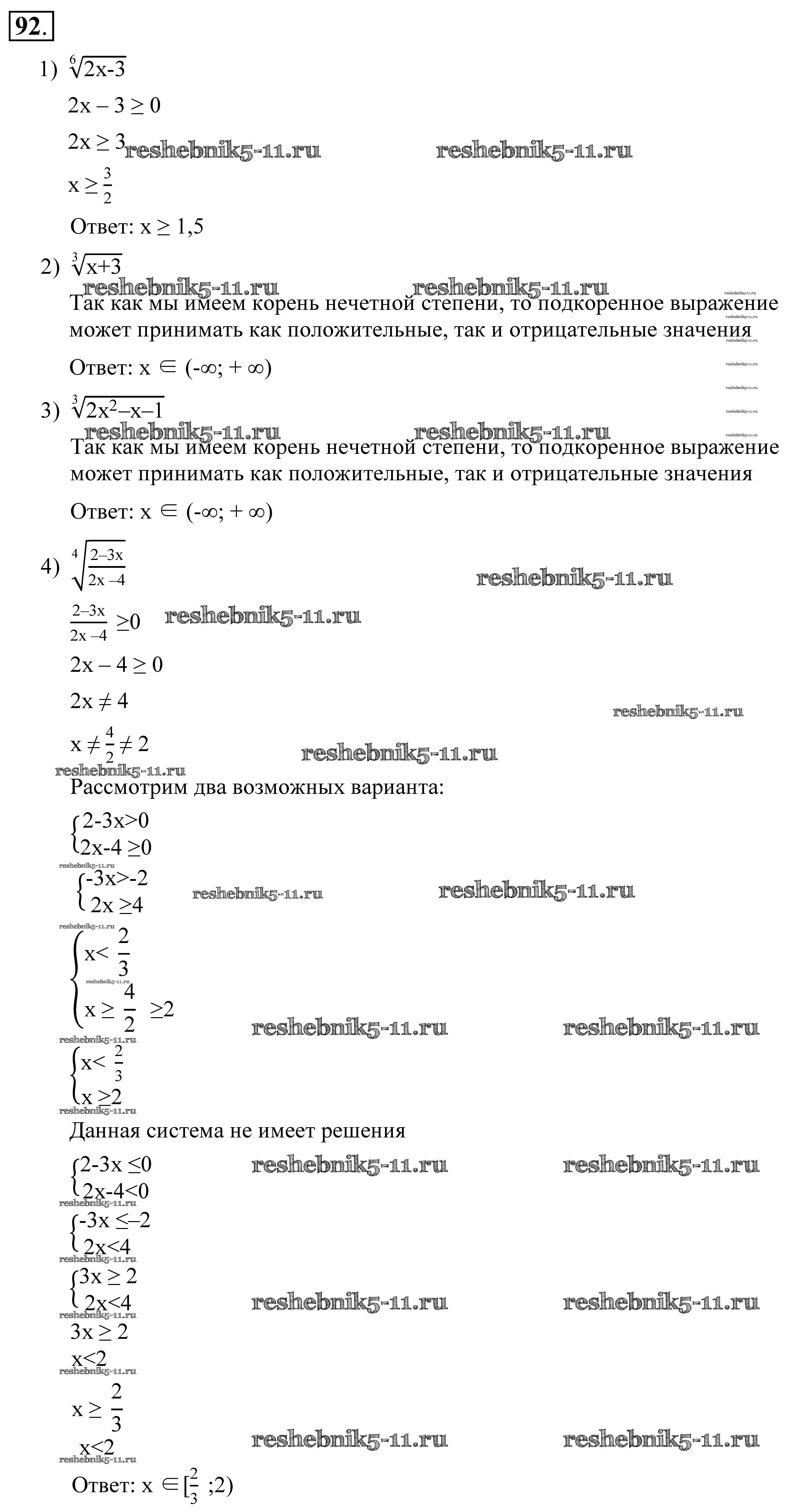Готовая домашняя работа с ответами по Алгебре за 9 класс Алимов, Колягин, Сидоров Учебник Просвещение 2014 ФГОС - Упражнения 92