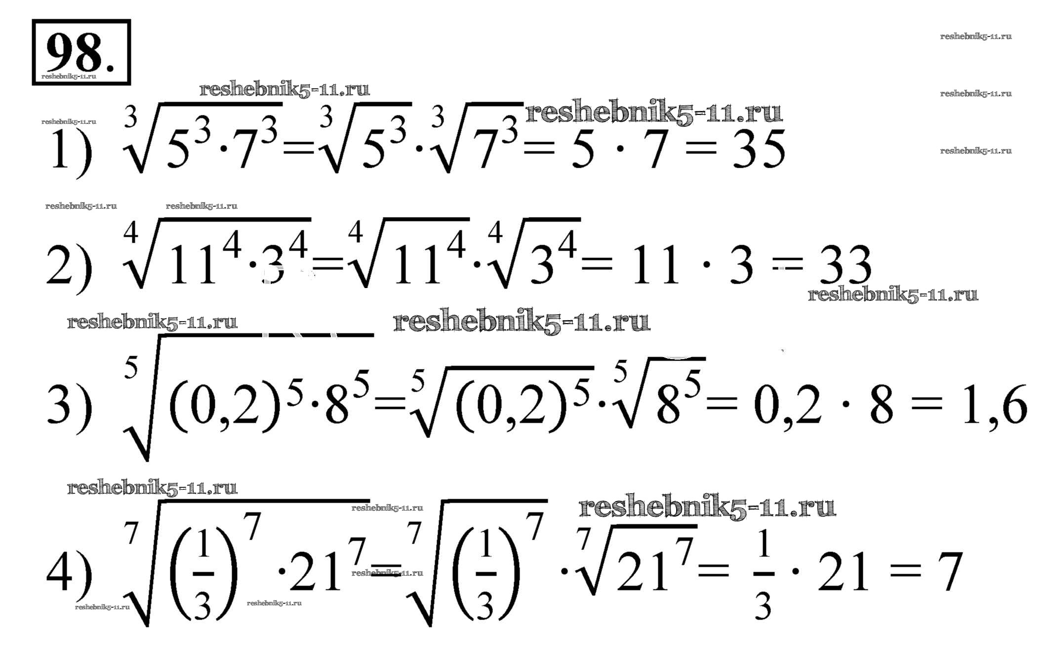 Готовая домашняя работа с ответами по Алгебре за 9 класс Алимов, Колягин, Сидоров Учебник Просвещение 2014 ФГОС - Упражнения 98