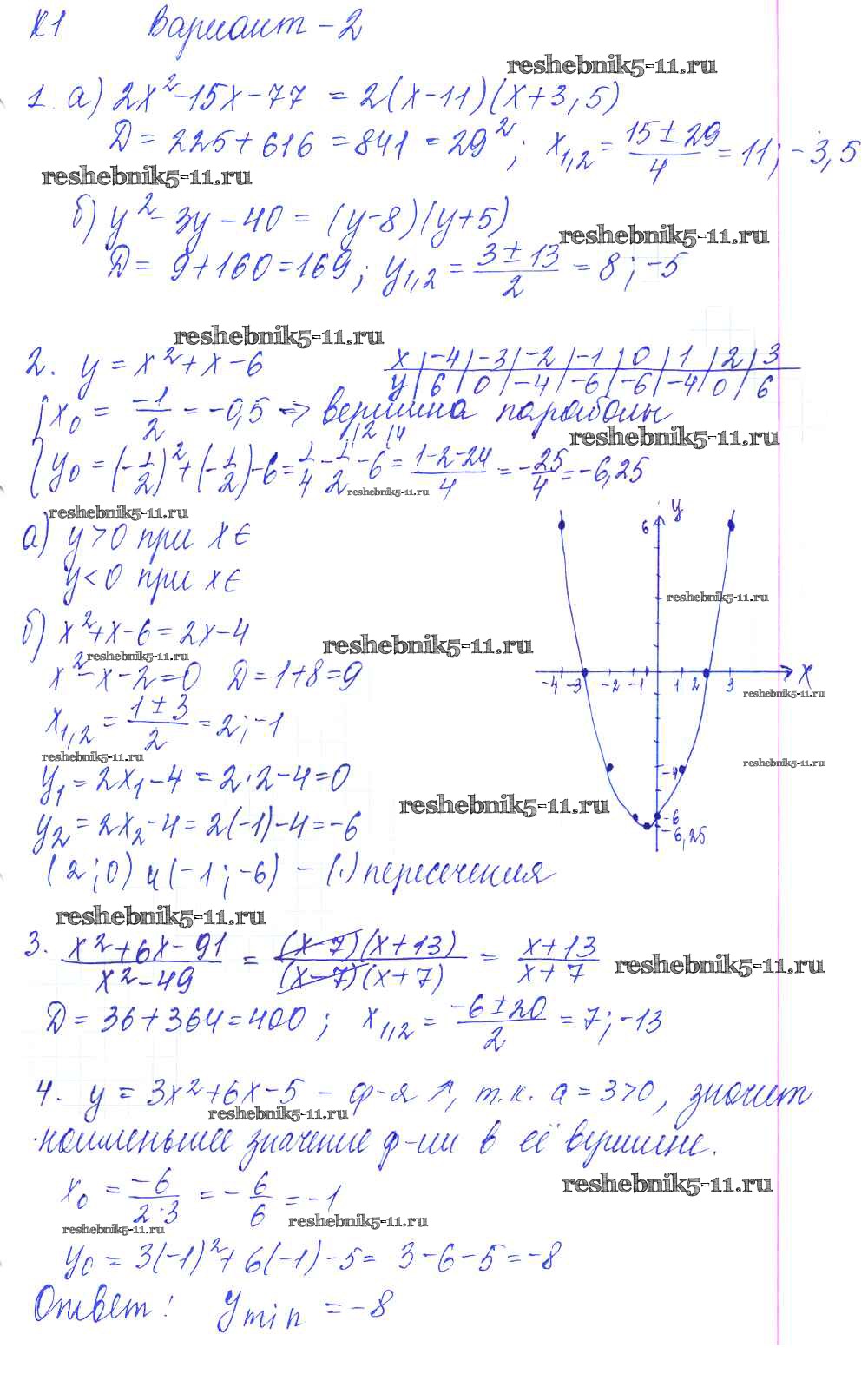 Готовая домашняя работа с ответами по Алгебре за 9 класс Журавлев, Малышева, Свентковский Контрольные и самостоятельные работы УМК Экзамен 2016 ФГОС - К-1. Квадратичная функция Вариант №2