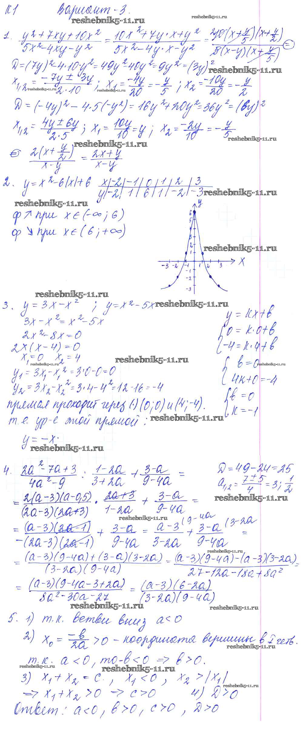 Готовая домашняя работа с ответами по Алгебре за 9 класс Журавлев, Малышева, Свентковский Контрольные и самостоятельные работы УМК Экзамен 2016 ФГОС - К-1. Квадратичная функция Вариант №3