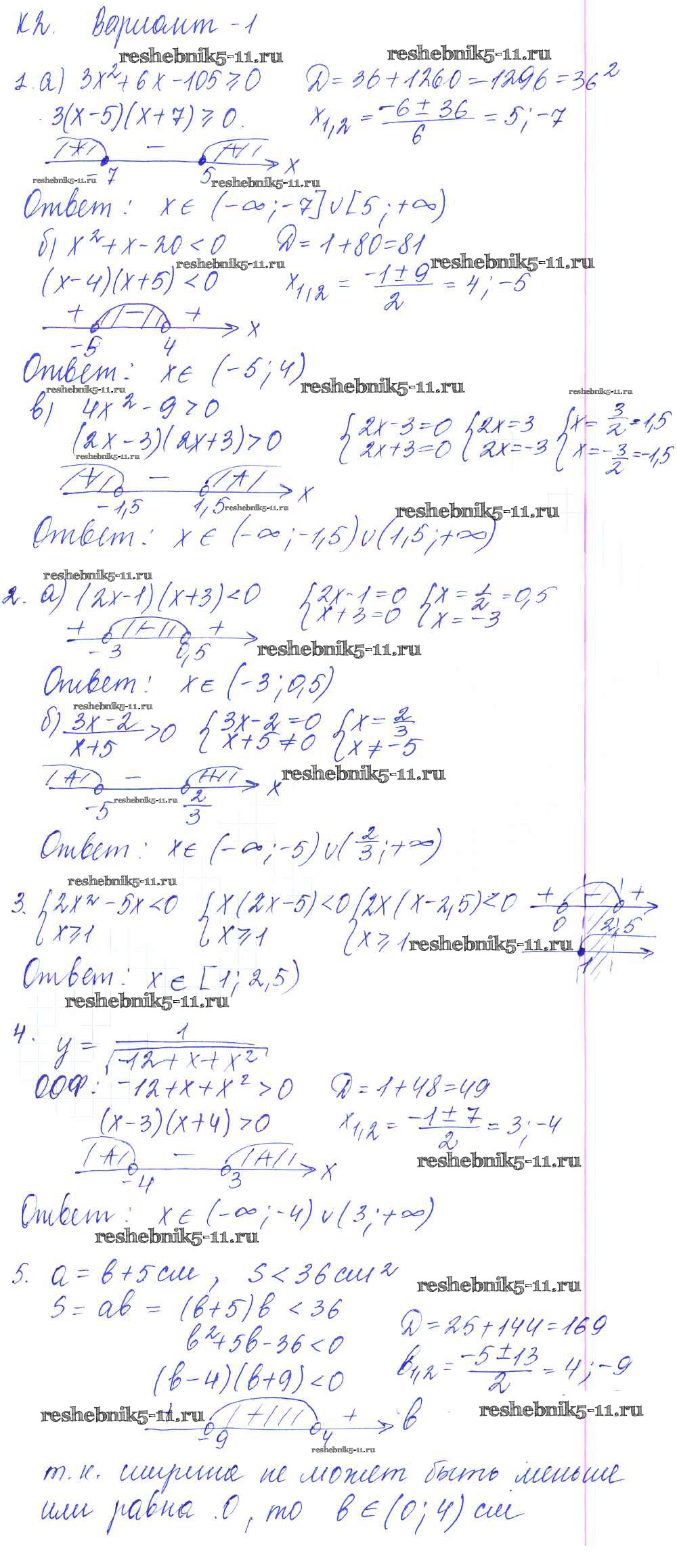 Готовая домашняя работа с ответами по Алгебре за 9 класс Журавлев, Малышева, Свентковский Контрольные и самостоятельные работы УМК Экзамен 2016 ФГОС - К-2. Решение неравенств Вариант №1
