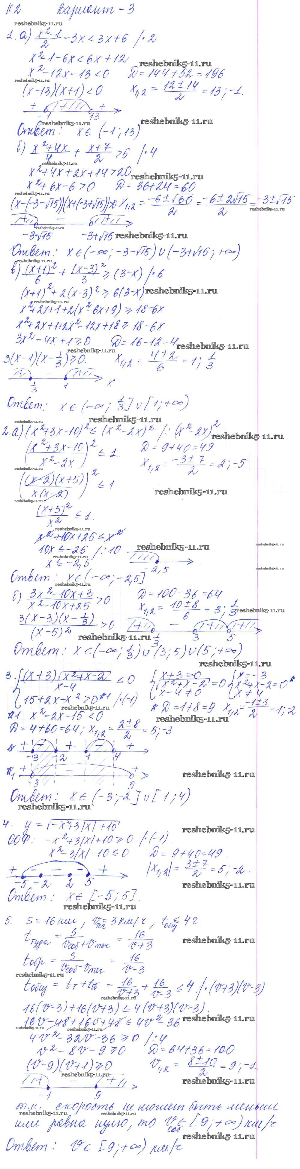 Готовая домашняя работа с ответами по Алгебре за 9 класс Журавлев, Малышева, Свентковский Контрольные и самостоятельные работы УМК Экзамен 2016 ФГОС - К-2. Решение неравенств Вариант №3