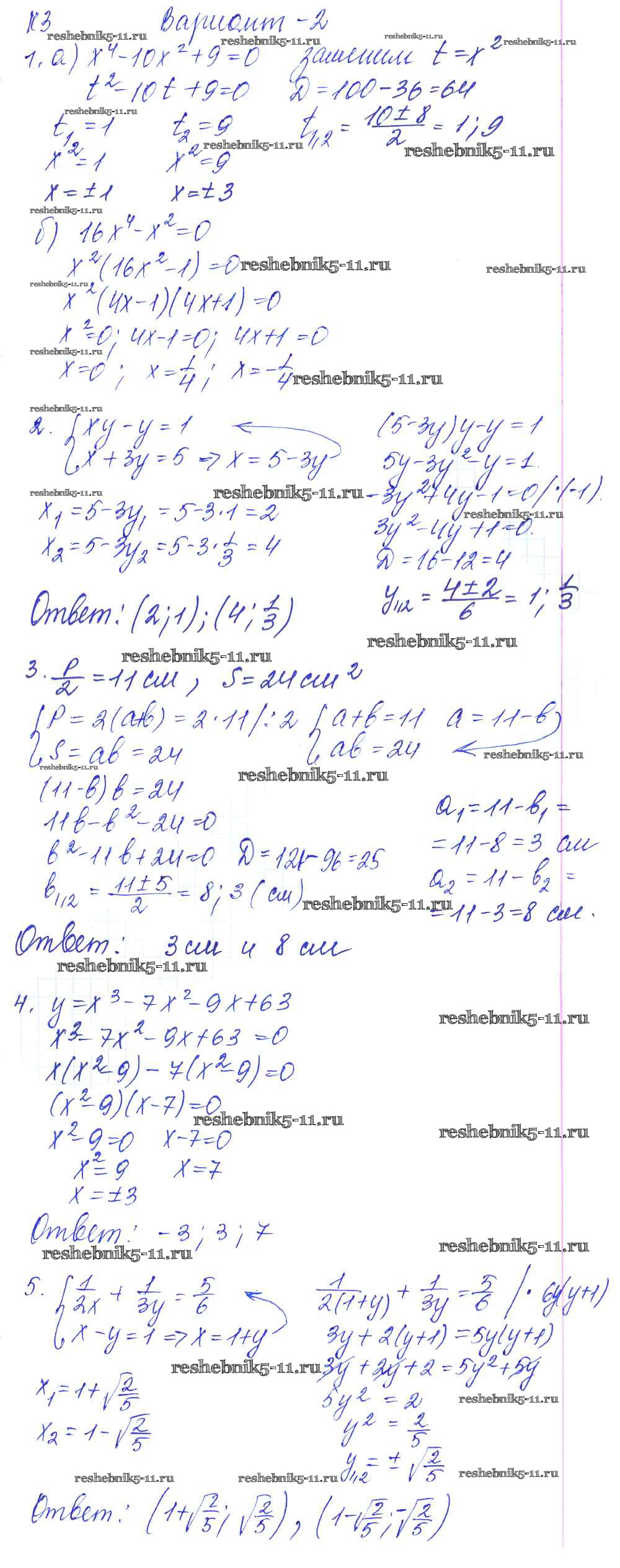 Готовая домашняя работа с ответами по Алгебре за 9 класс Журавлев, Малышева, Свентковский Контрольные и самостоятельные работы УМК Экзамен 2016 ФГОС - К-3. Целые уравнения и системы уравнений Вариант №2