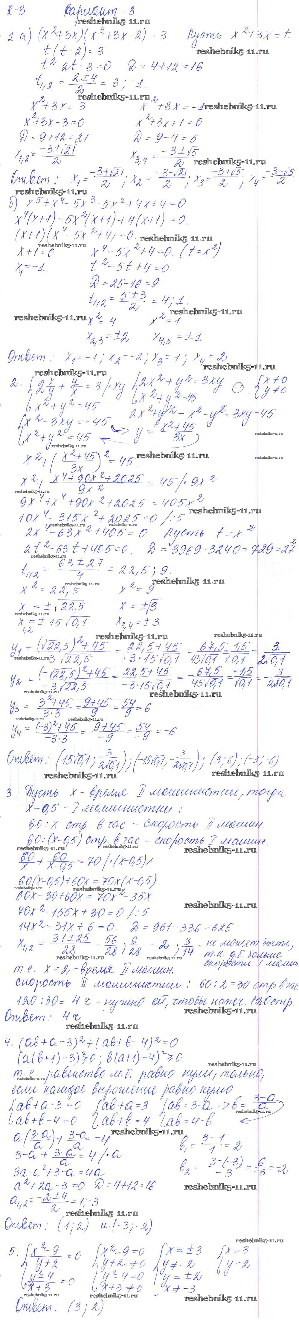 Готовая домашняя работа с ответами по Алгебре за 9 класс Журавлев, Малышева, Свентковский Контрольные и самостоятельные работы УМК Экзамен 2016 ФГОС - К-3. Целые уравнения и системы уравнений Вариант №3