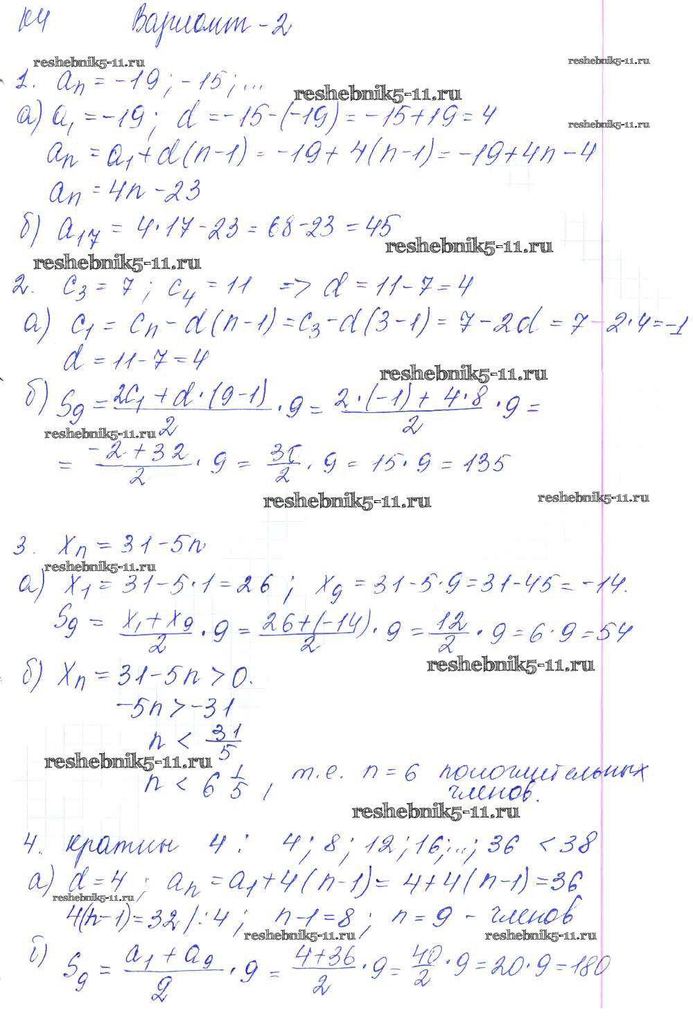 Готовая домашняя работа с ответами по Алгебре за 9 класс Журавлев, Малышева, Свентковский Контрольные и самостоятельные работы УМК Экзамен 2016 ФГОС - К-4. Арифметическая прогрессия Вариант №2