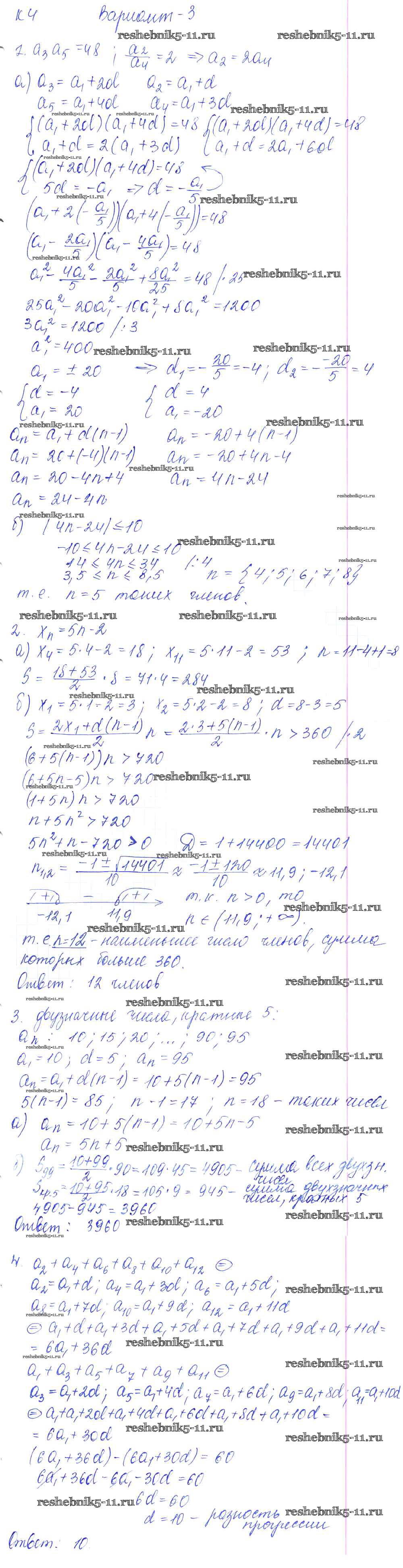 Готовая домашняя работа с ответами по Алгебре за 9 класс Журавлев, Малышева, Свентковский Контрольные и самостоятельные работы УМК Экзамен 2016 ФГОС - К-4. Арифметическая прогрессия Вариант №3