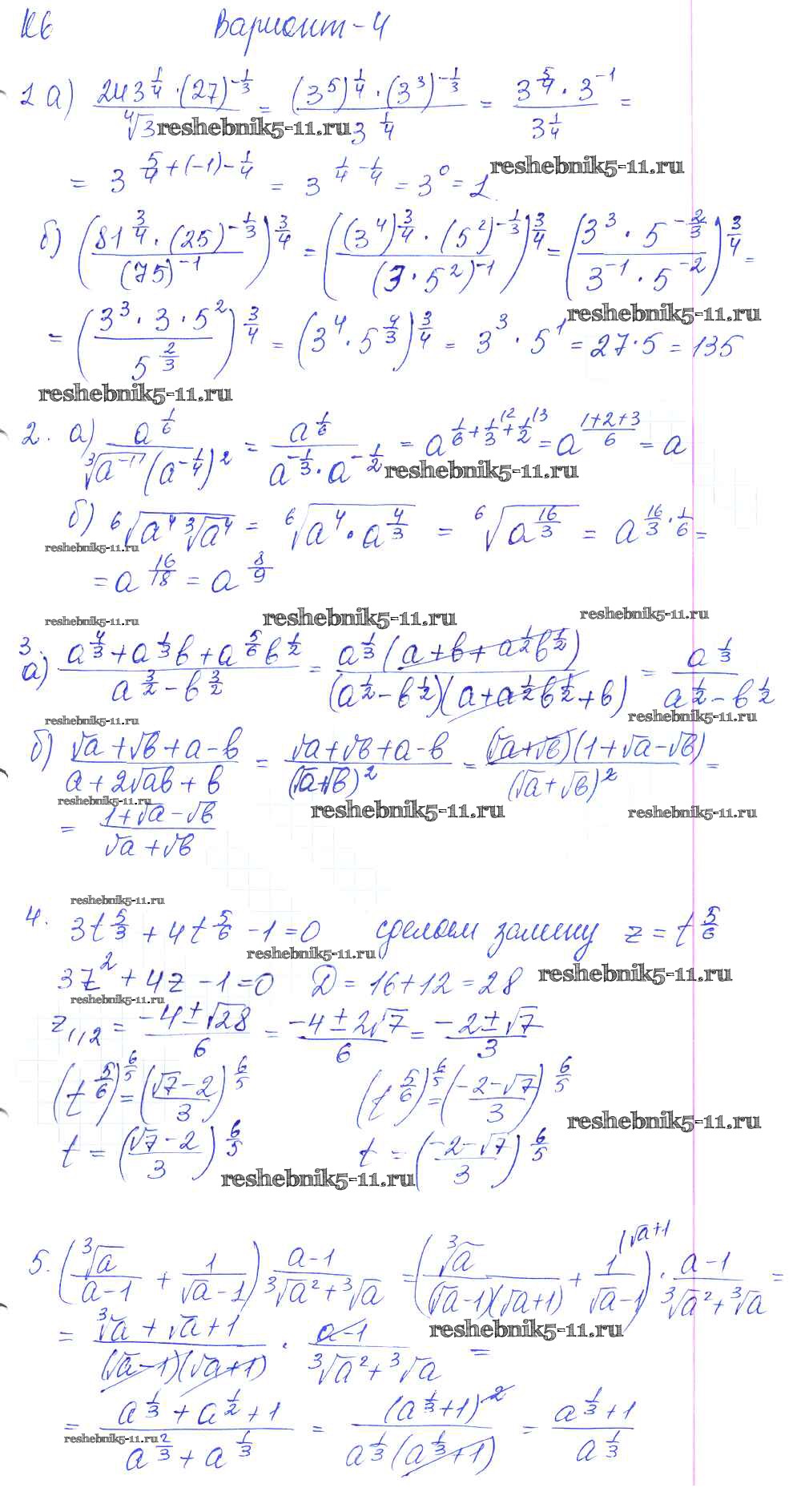 Готовая домашняя работа с ответами по Алгебре за 9 класс Журавлев, Малышева, Свентковский Контрольные и самостоятельные работы УМК Экзамен 2016 ФГОС - К-6. Степень с рациональным показателем Вариант №4