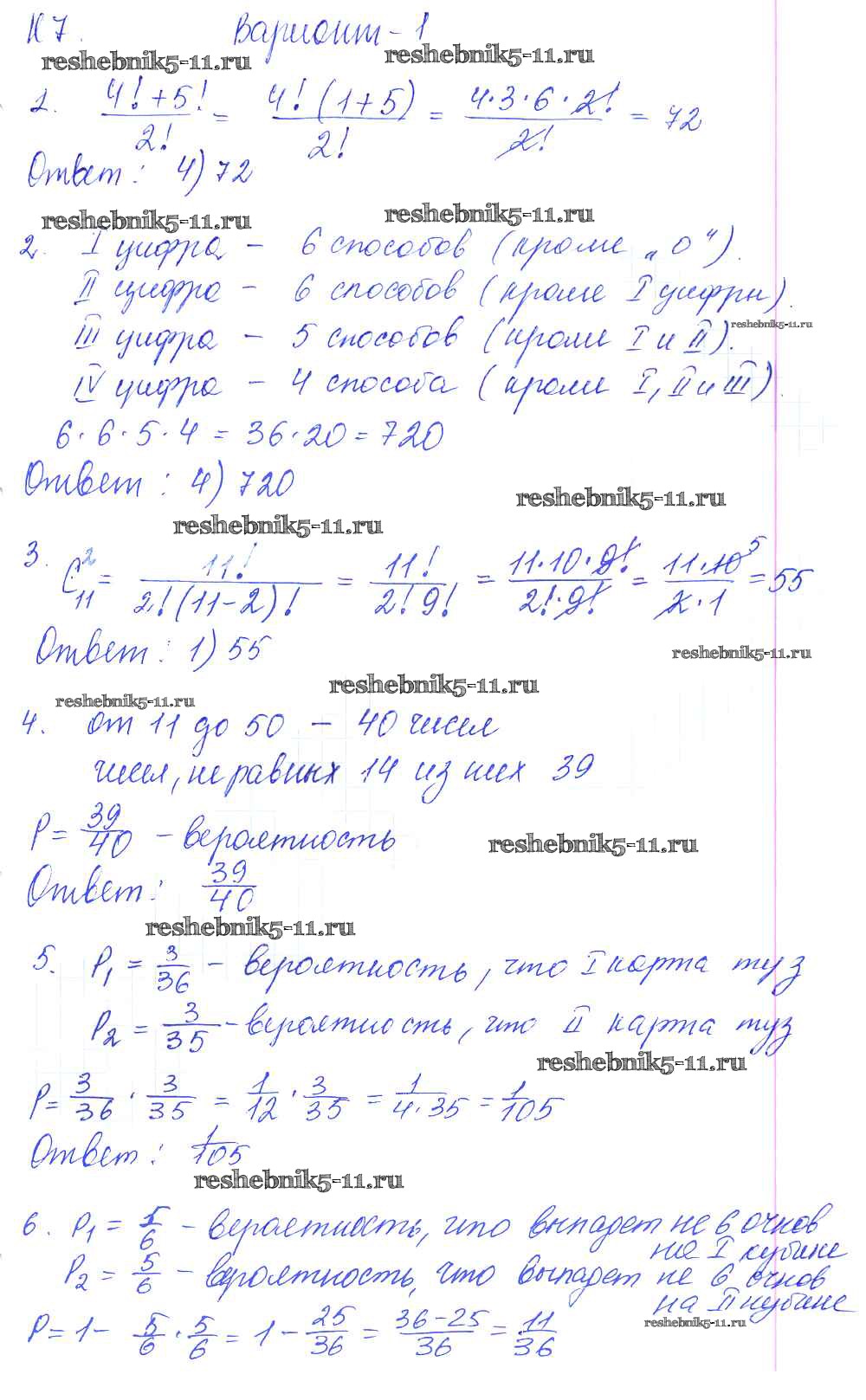 Готовая домашняя работа с ответами по Алгебре за 9 класс Журавлев, Малышева, Свентковский Контрольные и самостоятельные работы УМК Экзамен 2016 ФГОС - К-7. Элементы комбинаторики и теории вероятностей Вариант №1