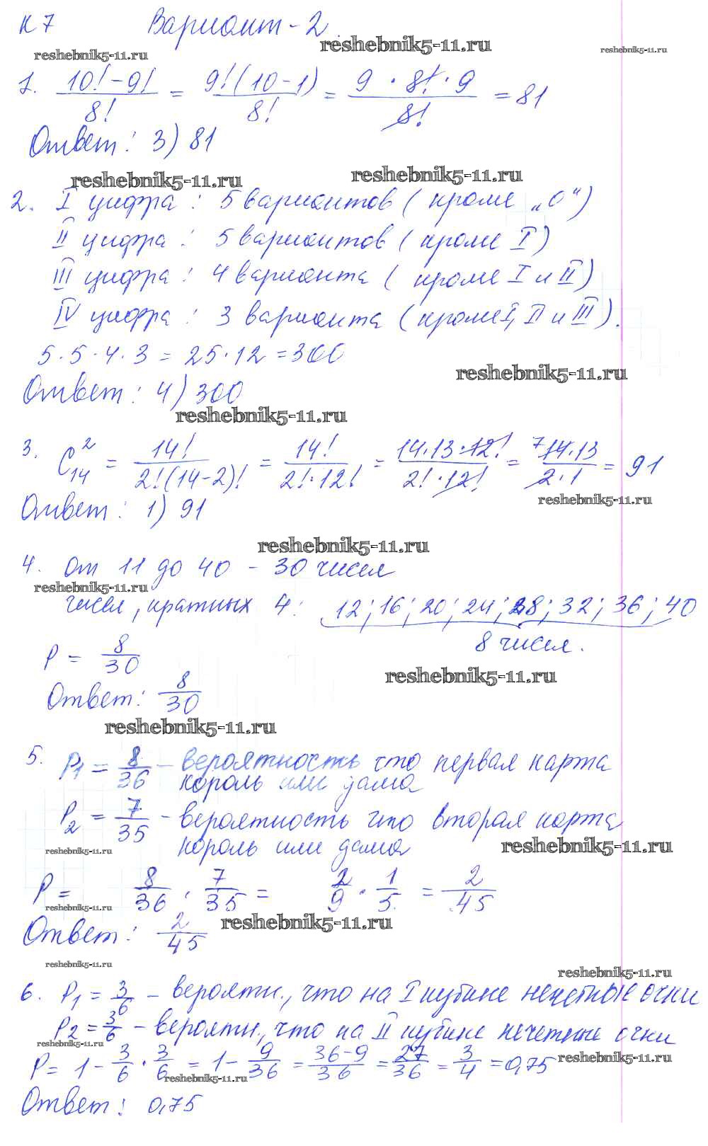 К-7. Элементы комбинаторики и теории вероятностей