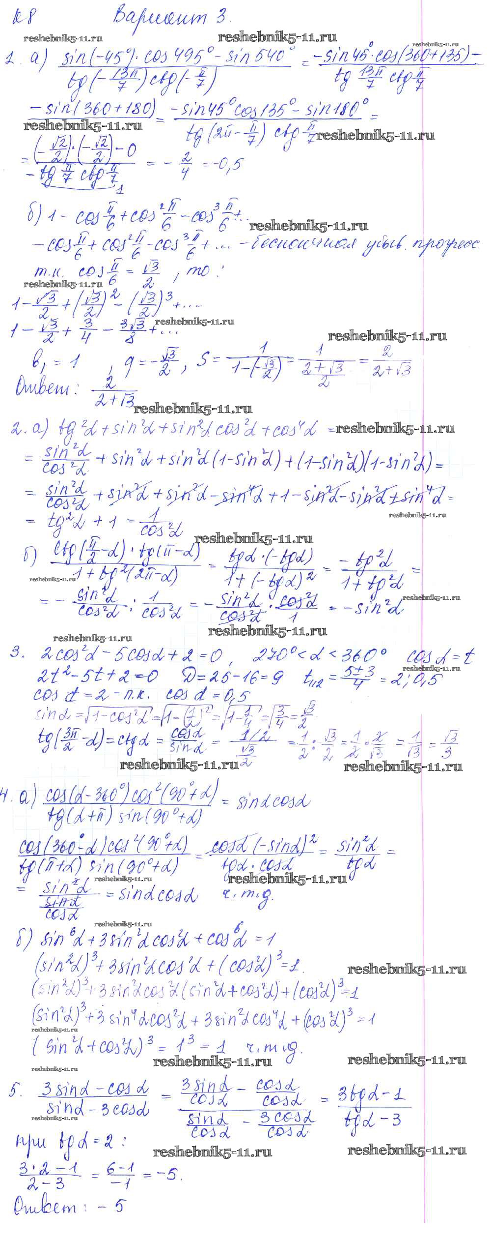 Готовая домашняя работа с ответами по Алгебре за 9 класс Журавлев, Малышева, Свентковский Контрольные и самостоятельные работы УМК Экзамен 2016 ФГОС - К-8. Свойства тригонометрических функций. Тригонометрические тождества. Формулы приведения Вариант №3