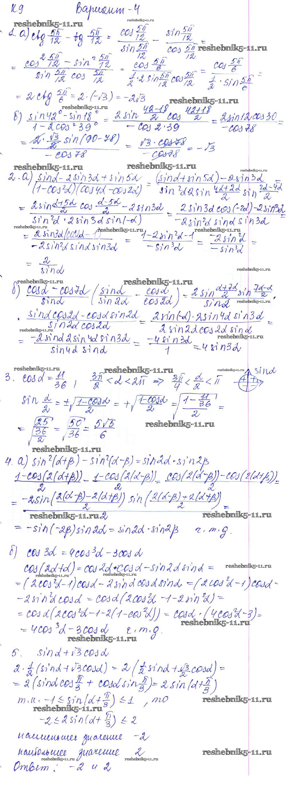 Готовая домашняя работа с ответами по Алгебре за 9 класс Журавлев, Малышева, Свентковский Контрольные и самостоятельные работы УМК Экзамен 2016 ФГОС - К-9. Формулы сложения и их следствия Вариант №4