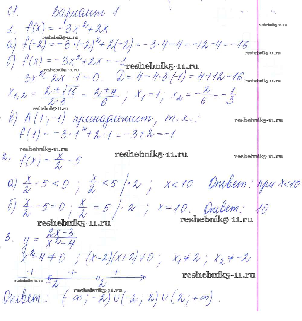 Готовая домашняя работа с ответами по Алгебре за 9 класс Журавлев, Малышева, Свентковский Контрольные и самостоятельные работы УМК Экзамен 2016 ФГОС - С-1. Функции и их свойства Вариант №1